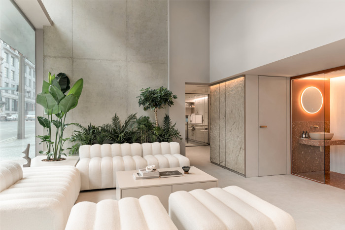 Jednoznačně se zde mísí prostor interiéru s exteriérem a dochází k „rozpuštění“ těchto hranic, které jsou jindy velmi často v rámci tradičního bydlení dodržovány.