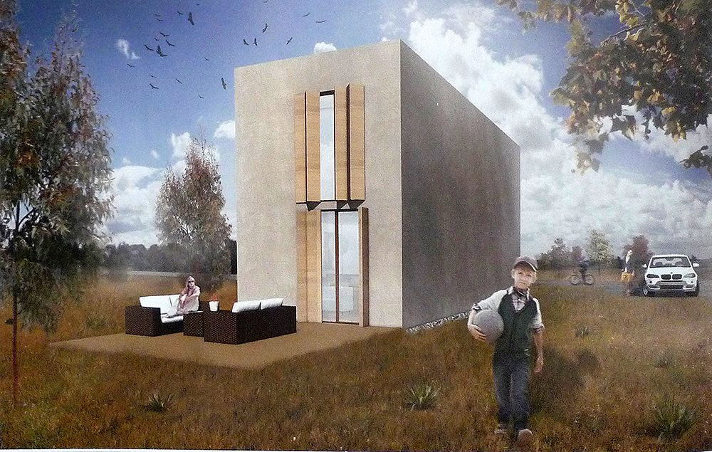 Cieľom návrhu bolo nájsť zaujímavú koncepciu komplexného architektonického riešenia rodinného domu, ktorý by svojou mierou komfortu, ale i umeleckým poňatím vyhovoval primeranej potrebe mladej rodiny. Ide o betónový dom zo stenových dielcov. Toto riešenie umožnilo maximálne využitie priestoru. Základom je teda prehľadná a logická dispozícia s dostatkom úložných priestorov a súčasne úspornom priestorovom koncepte. Dom má jednu hlavnú os, na ktorú na nabaľujú jednotlivé jeho miestnosti. Je navrhnutý tak, aby podľa potrieb rodiny bolo možné vybrať z troch variant veľkostí domu (3+KK, 4+KK/4+1, 5+KK/5+1) tú najvyhovujúcejšiu, bez narušenia priestorovej koncepcie a hlavnej myšlenky návrhu. Výsledný vzhľad domu je vo svojom pôsobení minimalistický, až asketický, avšak je tu kladený dôraz, aby zvolená kompozícia fasád odrážala logiku vnutorného usporiadania. Dom tak priznáva svoju jednoduchosť a priestorovú i funkčnú racionalitu.