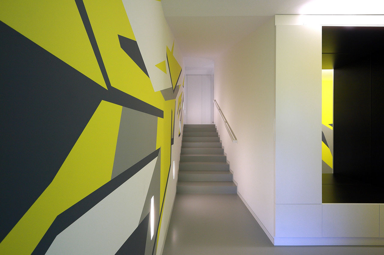 Výjimečnost architektonického výrazu tohoto domu posilují také použité materiály. Architekti zvolili předsazený provětrávaný fasádní systém StoVentec R s fasádním zateplovacím systémemStoTherm Classic. Finální povrch stěn je pak tvořen fasádní omítkou Stolit Milano v jasném žlutém odstínu, který kontrastuje s šedými sklocementovými deskami. Žlutá omítka je vodícím prvkem propojujícím exteriér s interiérem.