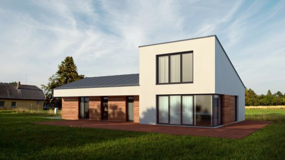 Byla zvolena základní koncepce přízemního bungalovu, která je nestandardně ozvláštněna částečným patrem s pracovnou / ložnicí. Tímto výrazným architektonickým prvkem bylo dosaženo hned několika důležitých předností domu. Dům vypadá z uliční části stále jako nenápadný bungalov a nijak nevybíhá z architektury okolních staveb, čímž dokonale zapadá do okolí. Ze zahradní části je naopak patrová část velmi dominantním prvkem vybíhajícím vstříc západnímu slunci a horám. V této části domu je navíc v přízemí situován hlavní obytný prostor s obývacím pokojem a kuchyňským koutem s jídelnou, který díky tomuto prvku získal na dominantnosti a exkluzivitě celého prostoru. Dispozice domu jsou jinak řešeny velmi střídmě a prakticky tak, aby byly v souladu se způsobem života mladé rodiny.