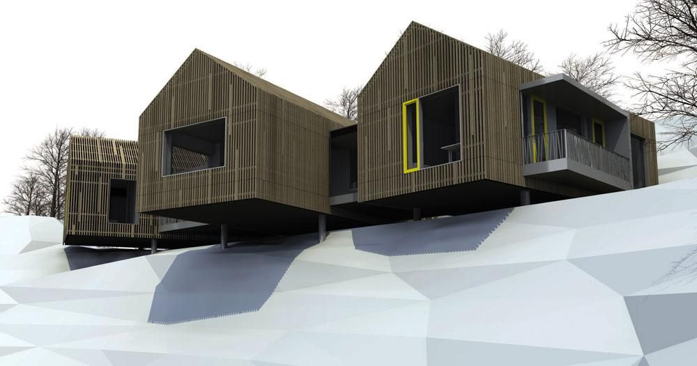 Žlutou kartou oceněný projekt rodinného domu v lomu nabízí čtyři varianty rodinného bydlení v krajině, kterou se znaží co nejvíce zachovat v původním stavu a využít strmých svahů k vytvoření úchvatných výhledů.