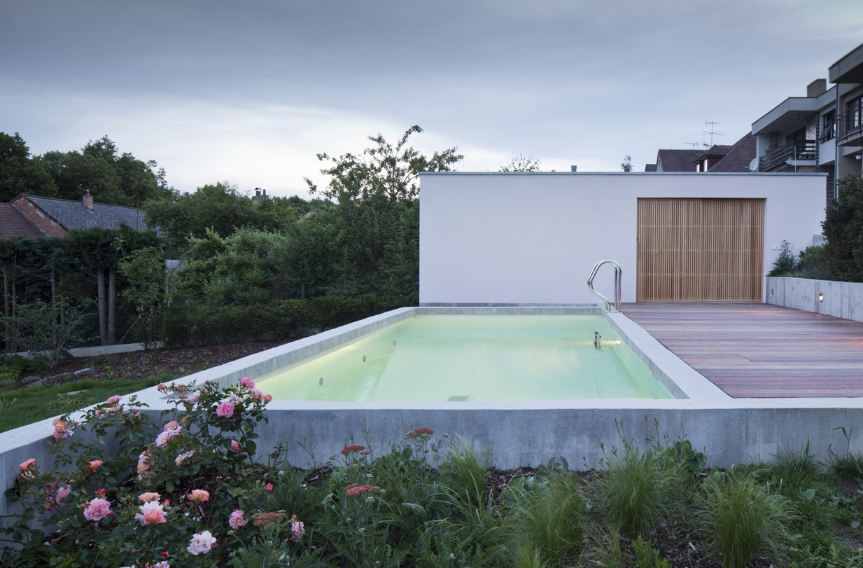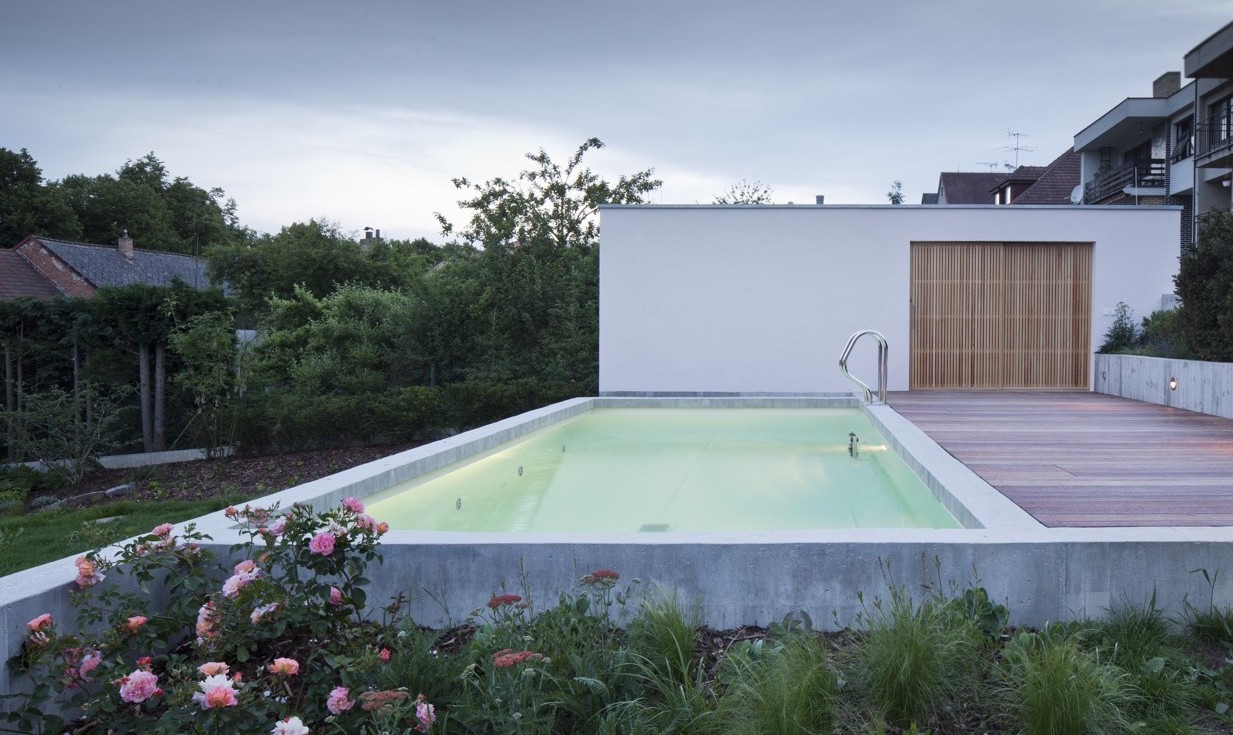 Rodinný dům se zapuštěným bazénem v Benešově se přizpůsobuje svažitému pozemku