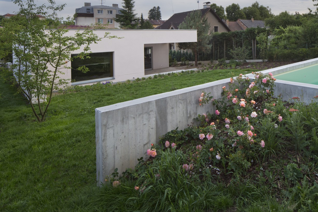 Do rozvolněné zástavby v Benešově umístila dvojice architektů Hynek Holiš a Šárka Holišová Šochová rodinný dům, který kopíruje pozvolné klesání pozemku. Právě tvar terénu a charakter okolí měly na koncept návrhu zásadní vliv. Architekti rozčlenili objekt na několik hmot s různými výškovými úrovněmi podlah, které jsou propojeny páteřní komunikací táhnoucí se u východní stěny domu. Stavbu obklopuje prostorná zahrada, jejíž součástí je také zapuštěný bazén se zahradním domkem.