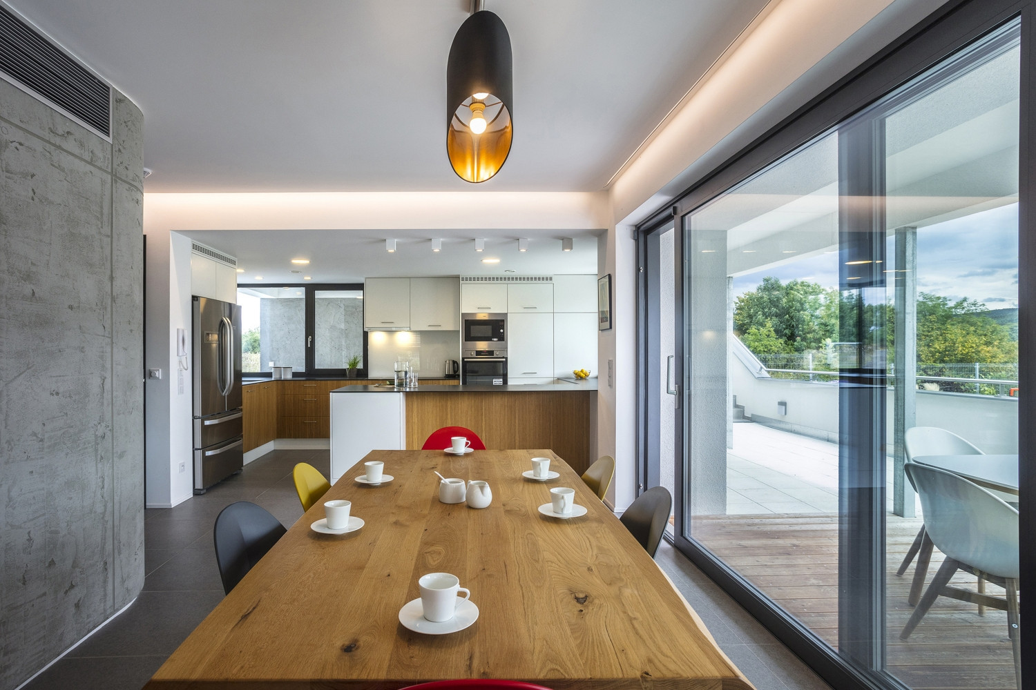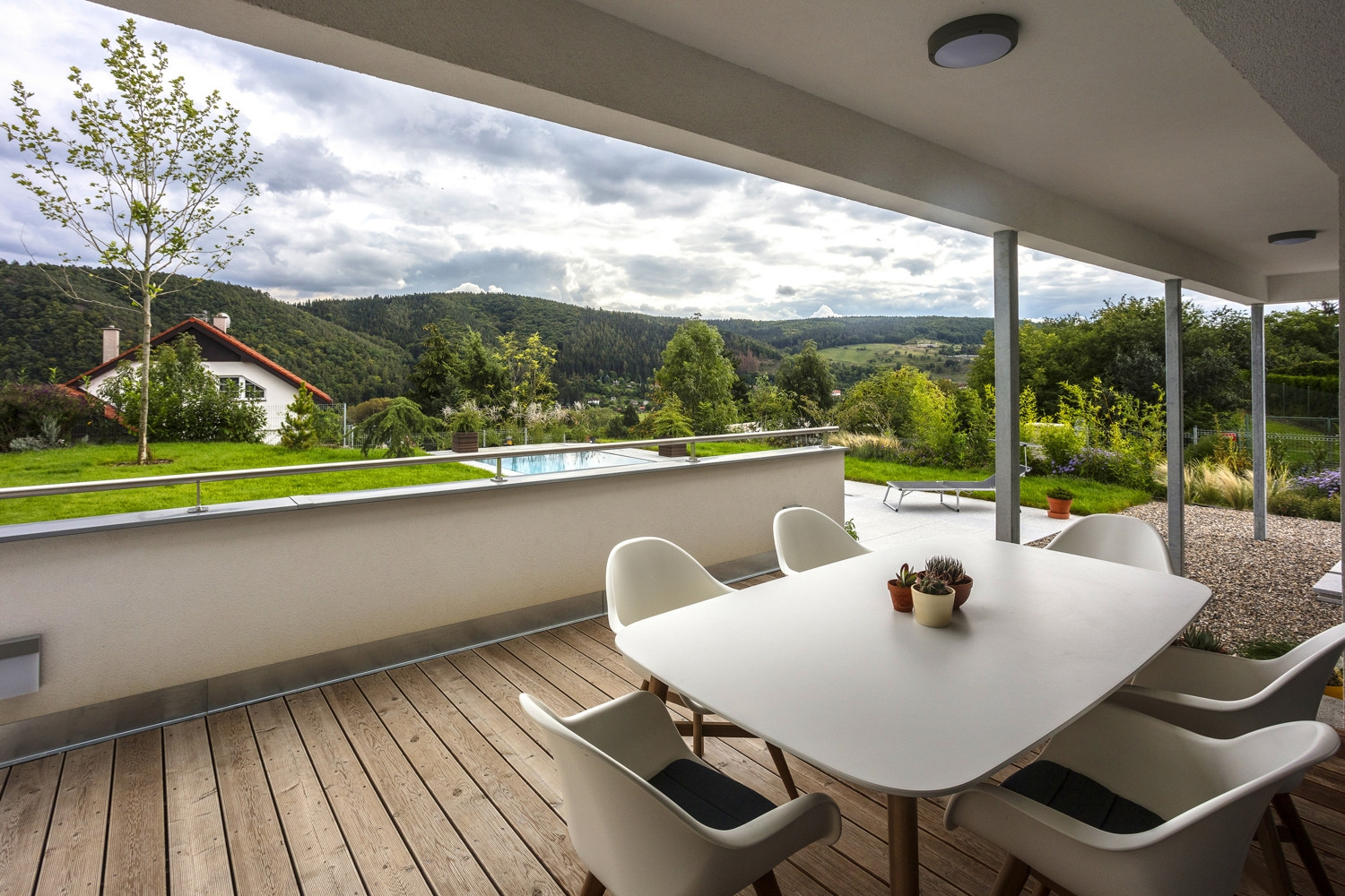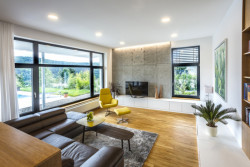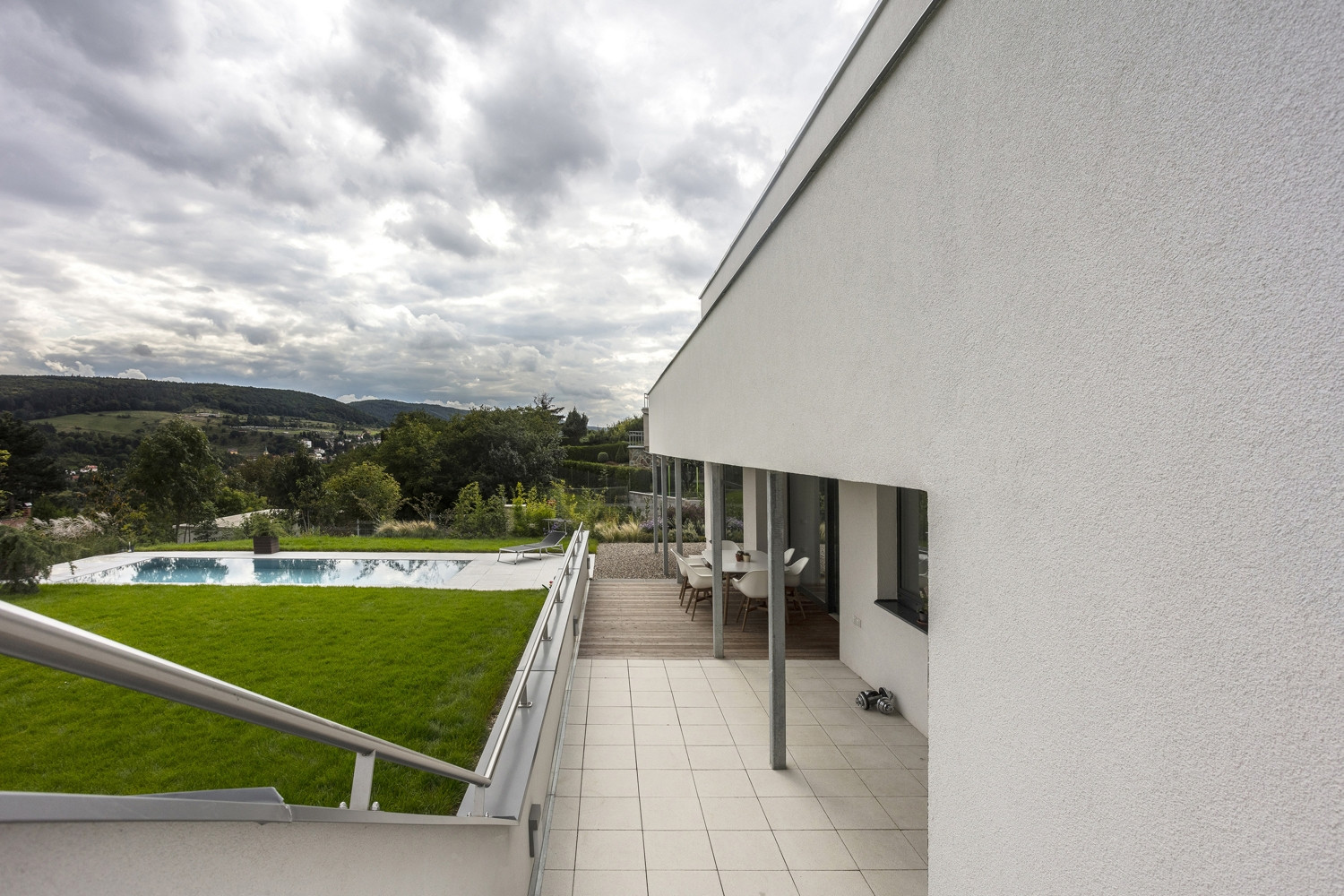 Vyvýšená poloha pozemku s výhledem na Berounku se spojila s investorovým úzkým vztahem k architektuře stylu Bauhaus a dovedla architekty z ateliéru Air k návrhu elegantního rodinného domu nabízejícímu daleké pohledy po okolní krajině včetně české metropole. Vedle velkoformátových oken v přízemí dům disponuje také rozměrnou terasou pro posílení vztahu mezi domem a exteriérem. Na domě najdeme také řadu nautických prvků vztahujících se právě k modernistické architektuře meziválečného období.