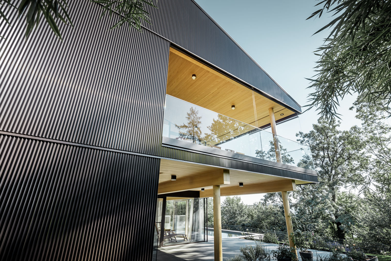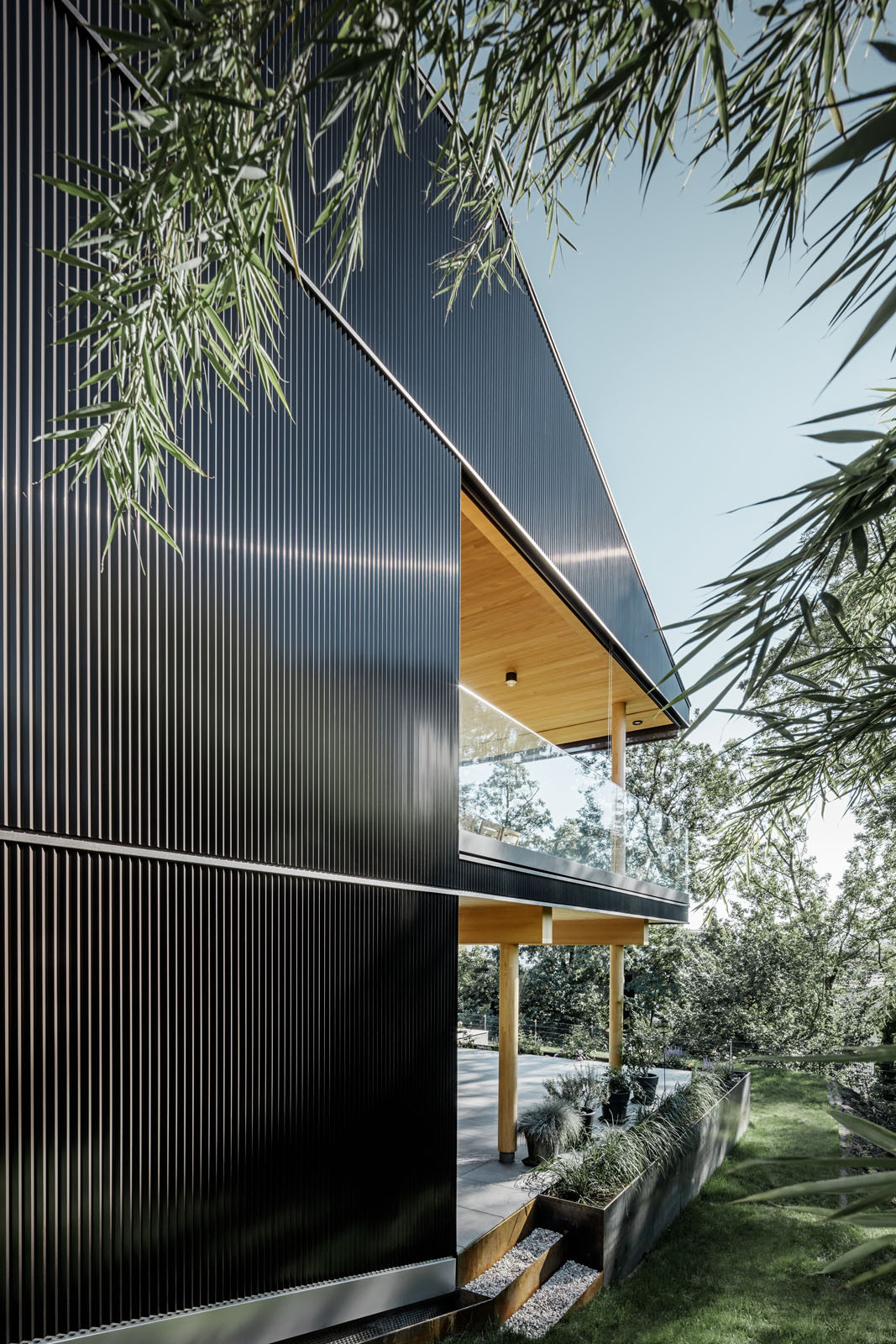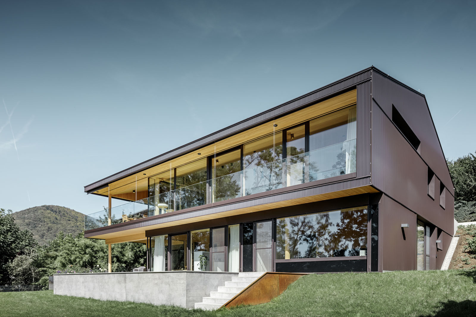 Vytvořit v Linci skutečnou oázu pro manželskou dvojici bylo pro architekta zajímavou výzvou, které se rád zhostil. Zadání znělo jasně: má jít o stavbu, která respektuje okolní krajinu a harmonicky s ní souzní, kromě toho je cílem také otevřený prostor a dokonalý výhled do okolí. Volání po přírodě nebylo tak těžké vyslyšet, stačilo použít dřevo jako dominantní materiál, vévodící interiéru. Ohledně fasády měl už ale majitel zcela jiné požadavky. „Nechtěl, aby jeho dům působil jako srub, s čímž jsem rozhodně souhlasil a snažil jsem se proto hledat na fasádu jiný vhodný materiál než dřevo. Tím se nakonec ukázal být pilový profil PREFA v intenzivní čokoládové barvě. Ta dokonale ladí se svým okolím a samotné budově dává punc jedinečnosti. „Ostatně, čokoládu milujeme snad všichni nebo ne?“ dodává s úsměvem Hammerer.