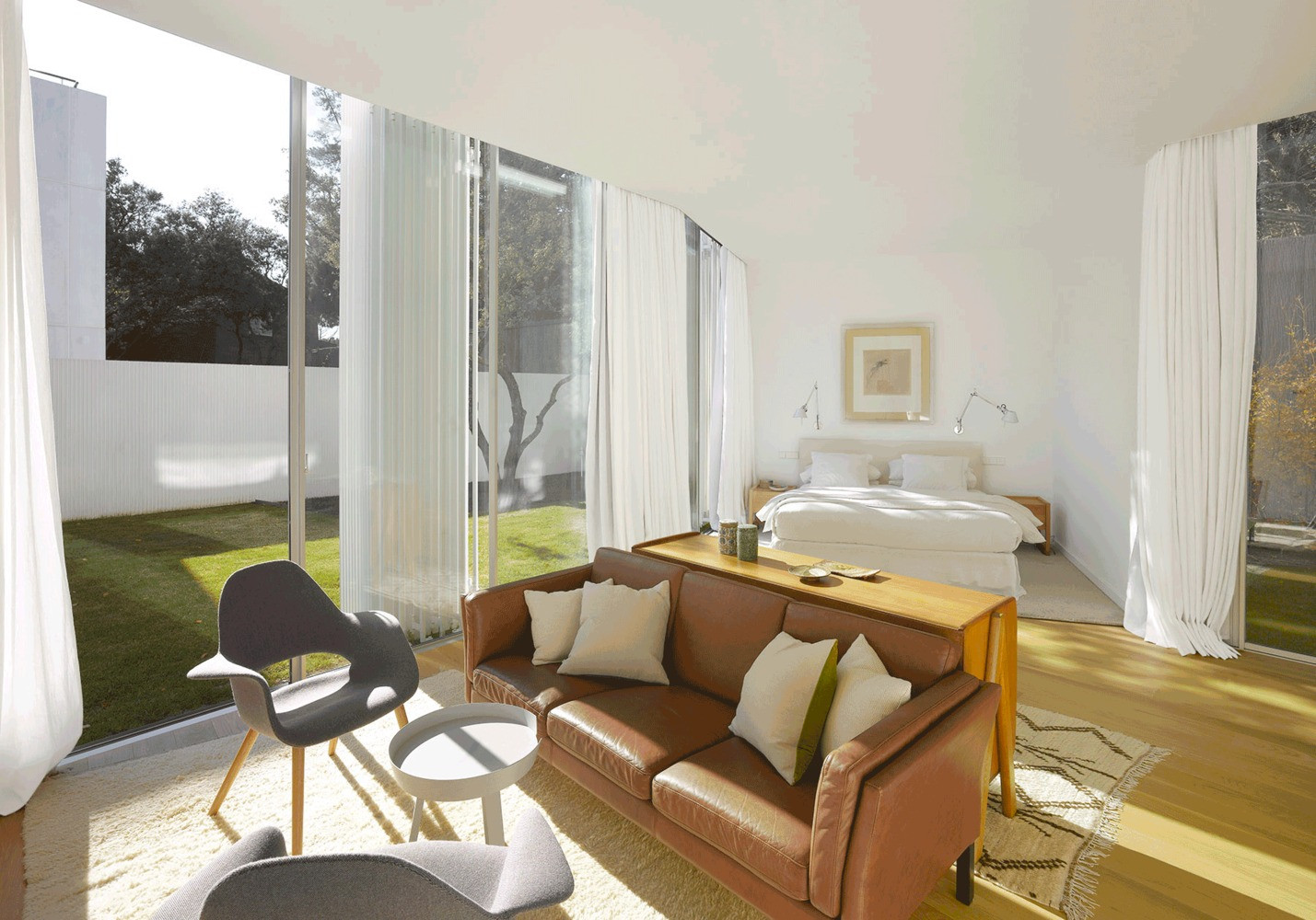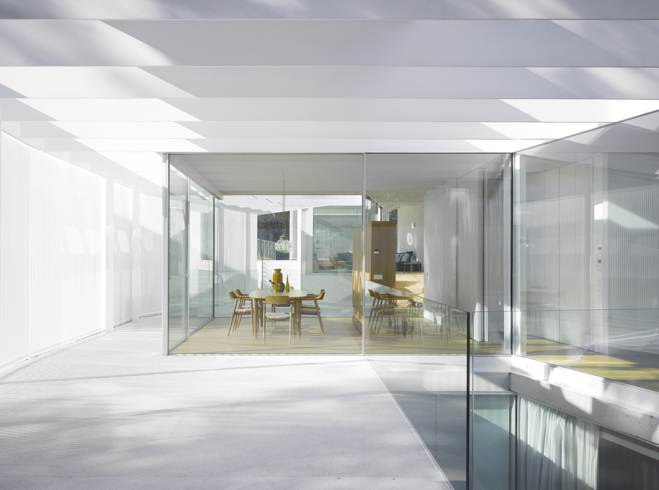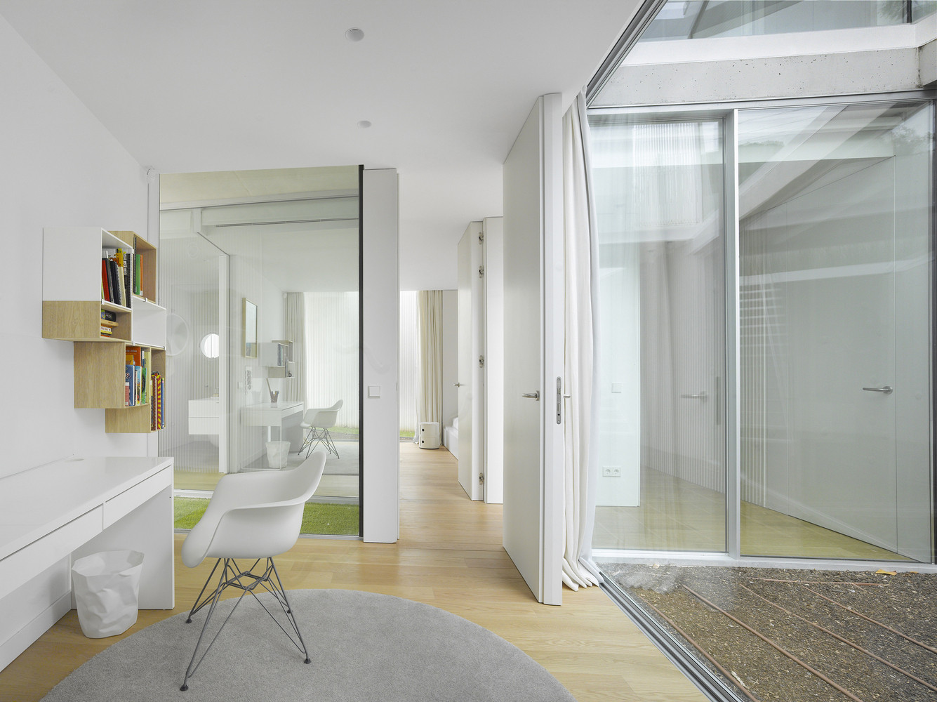 Ve vnitřním členění domu autoři kladli důraz na kontinuitu prostoru a propojení interiéru s exteriérem – jedná se ostatně o charakteristický rys moderní španělské architektury. Jednotlivé místnosti s konkrétními funkcemi na sebe plynule navazují a v příhodných momentech vybíhají do exteriéru pomocí teras a zahrady, která se ukrývá za plným plotem. Obytné místnosti představují podle slov architektů „nory“, do kterých díky otevřeným přiléhajícím prostorům vniká dostatek slunce.