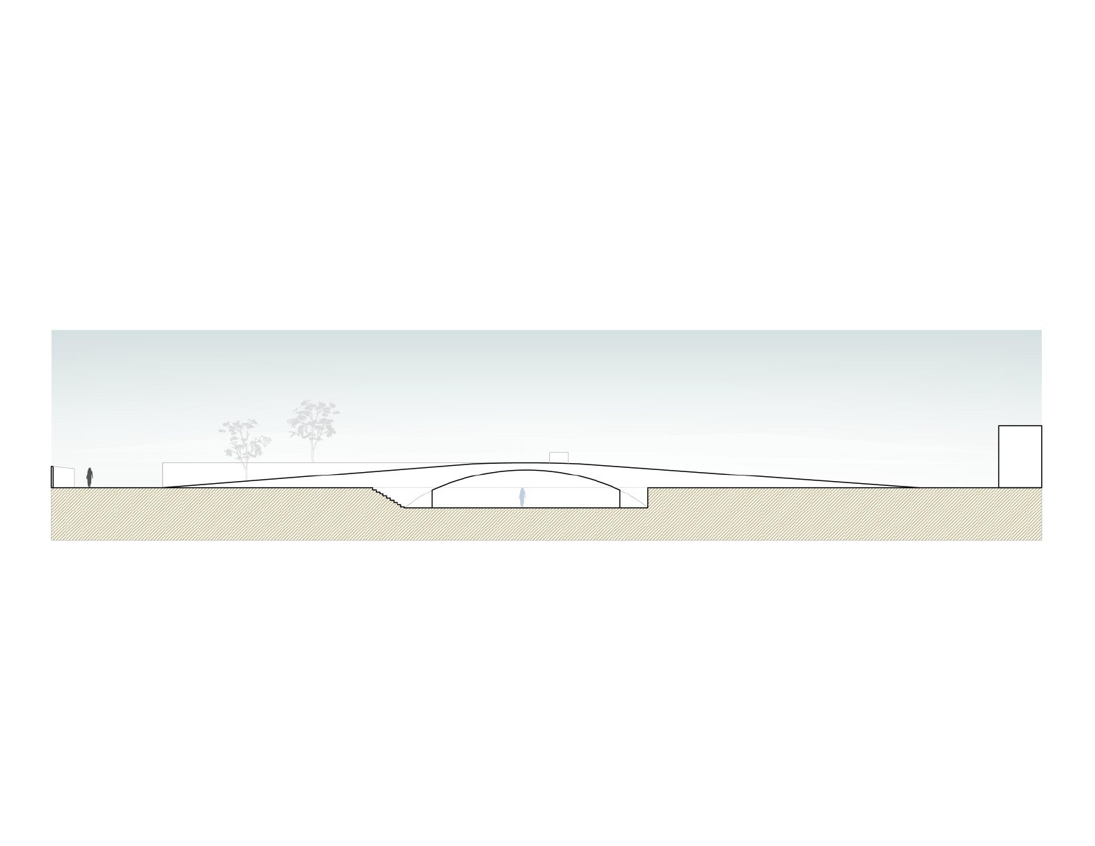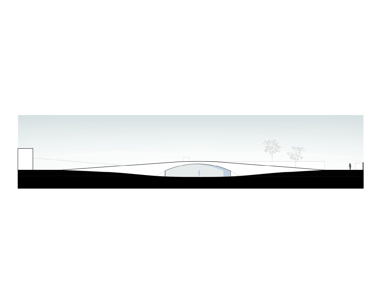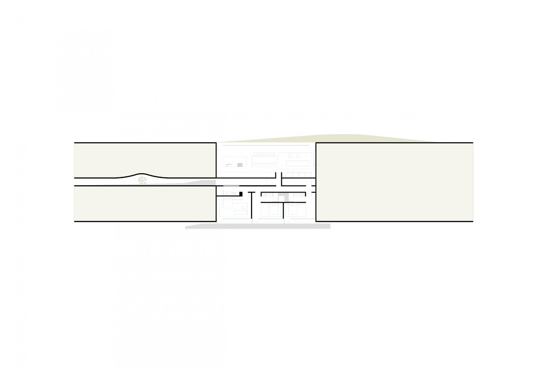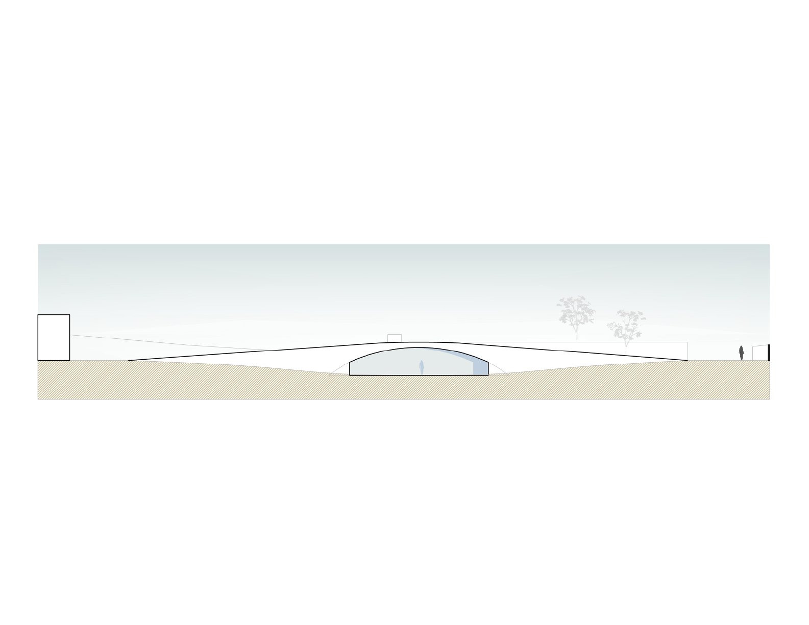 Rodinný dům je částečně zasazen do kopcovitého terénu. Betonové klenby navozují pocit jakési zabudované jeskyně a jsou dostatečně silné na to, aby bylo možné celou střechu pokrýt zelení. „Vytvořením krásného živého povrchu navázal projekt na okolní půdu a stal se tak jedním z mnoha kopců v krajině,“ uvádí HW Studio.