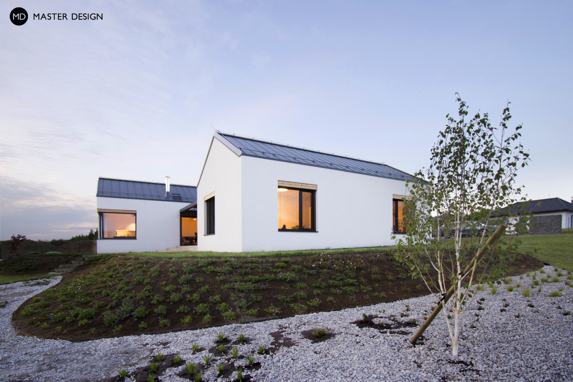 Rodinný dům v malé obci Pržno v podhůří Beskyd navrhli architekti z Master Design s respektem k tradiční zástavbě – a zároveň v opozici k „místním stavebním poměrům“. Směrem do ulice zrcadlí dům svým tvarem i měřítkem obraz venkovské návsi, do zahrady se pak otevírá velkými okny.