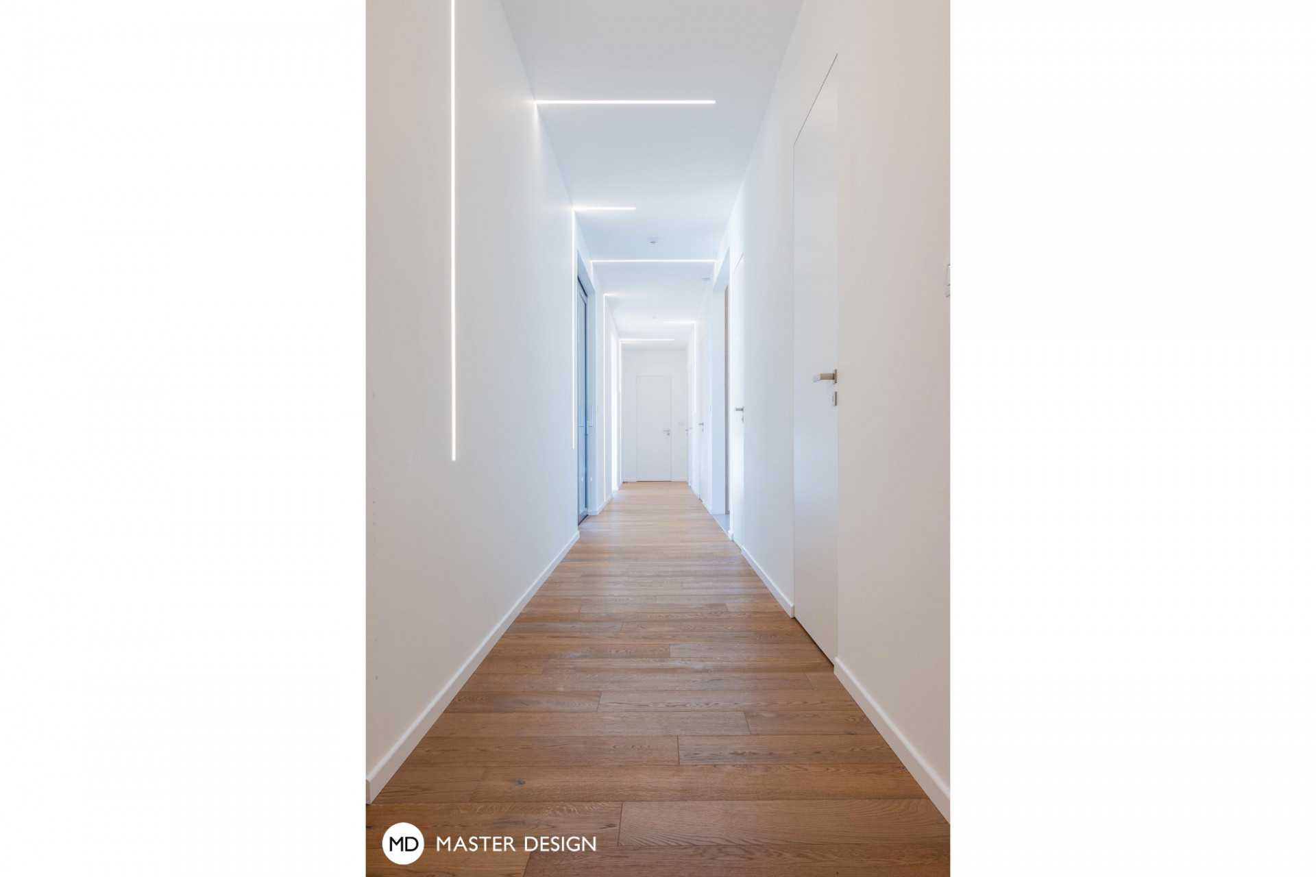 Do středové části situovali architekti šatnu navazující na prostorné zádveří, denní koupelnu a technické zázemí domu. Na vstupní část pak navazuje ústřední komunikační koridor s přímým průhledem do zahrady přes přilehlou terasu.