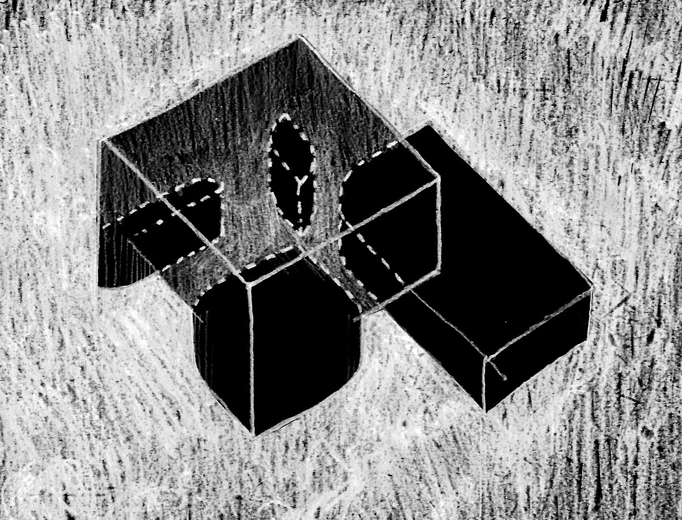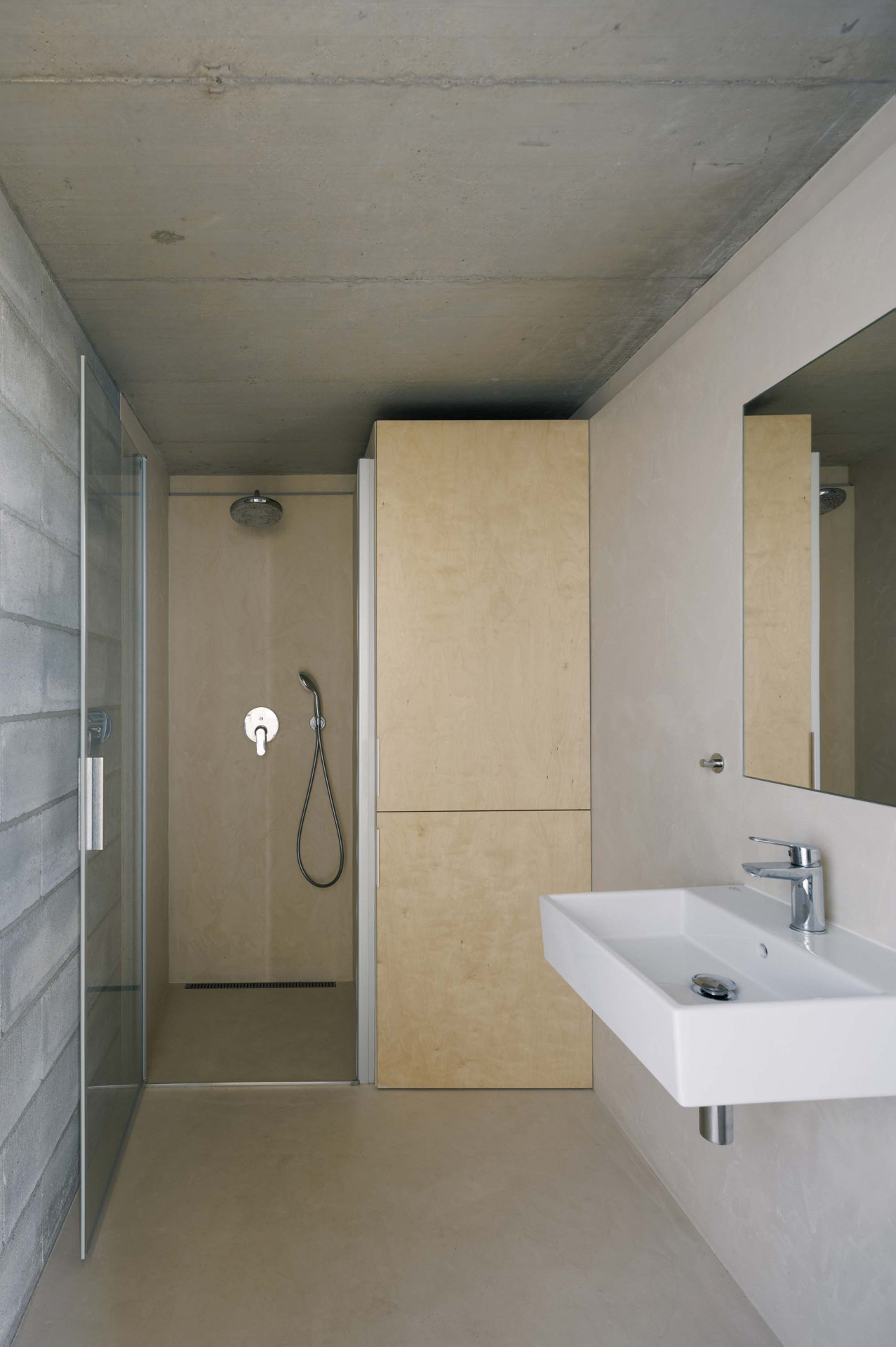 K hlavní hmotě domu přiléhá jednopodlažní přístavek – jakýsi appendix. V něm se nachází servisní prostor domu. Tady se neomítnuté tvárnice propisují dovnitř i ven.