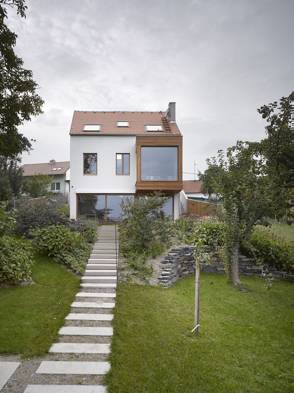 Základním motem návrhu architektonického dua Jaroušek Rochová bylo “chytré“ usazení hmoty a dispozic domu do svažitého terénu a jeho návaznost na zahradu a ulici.
