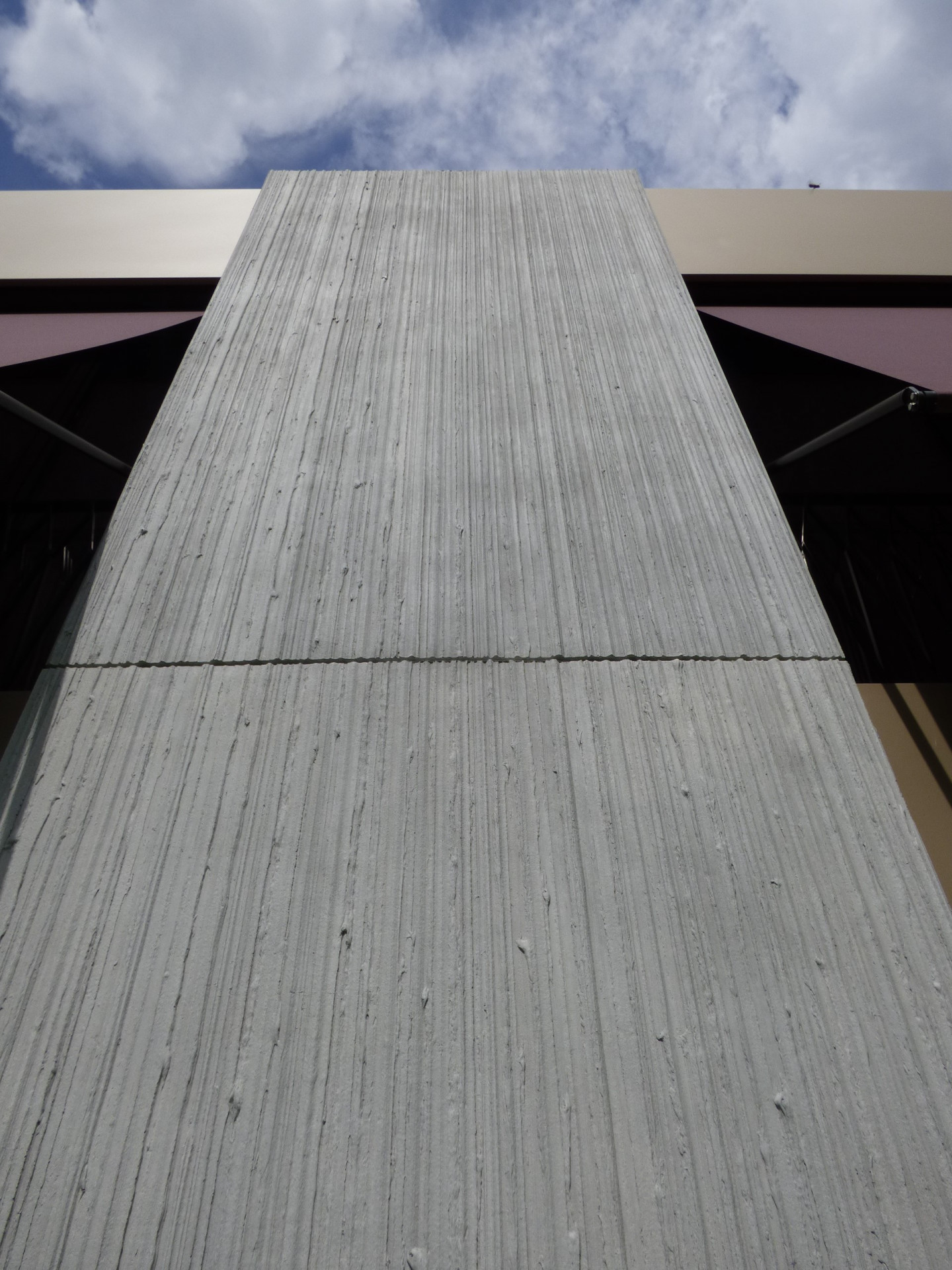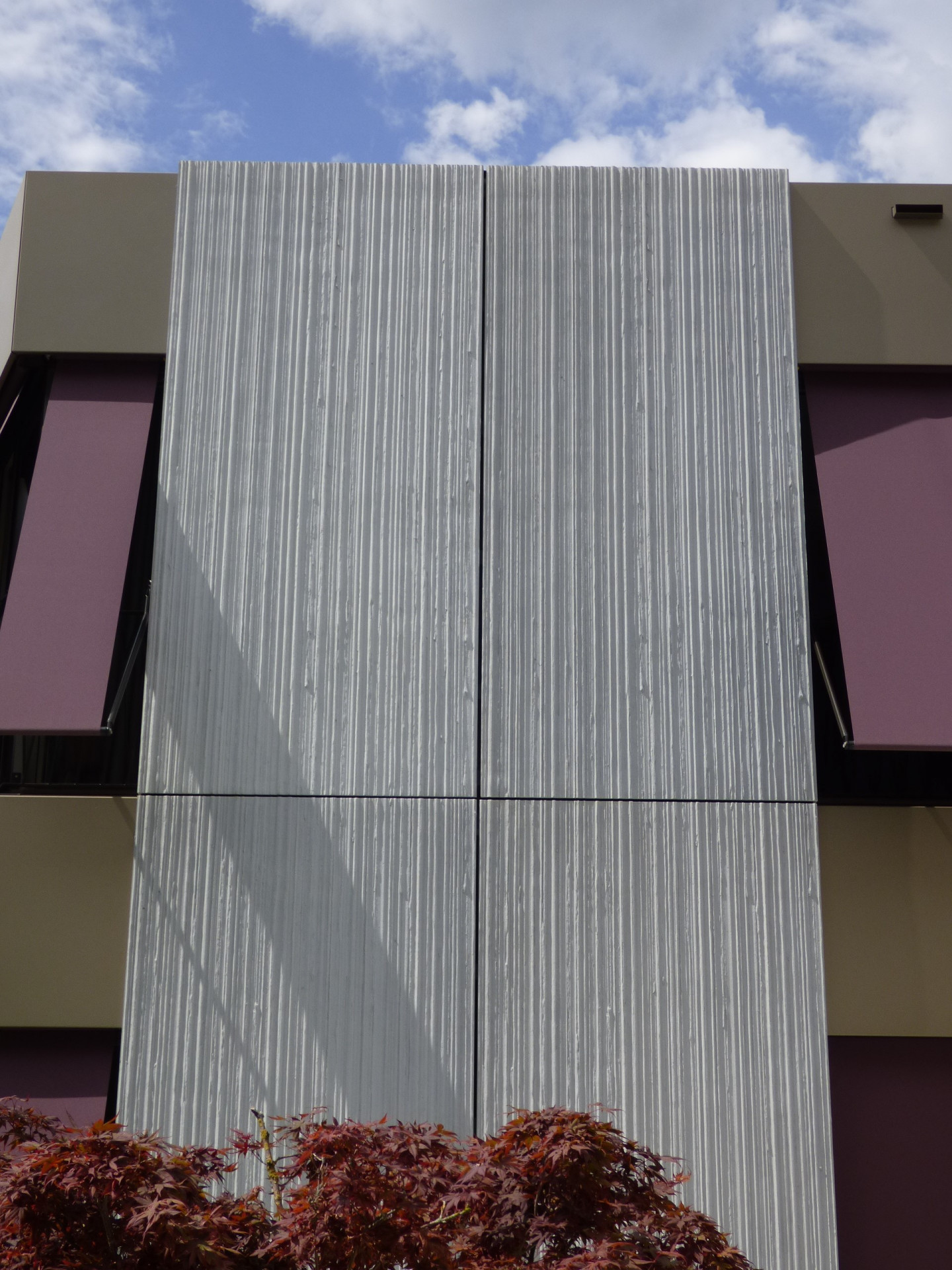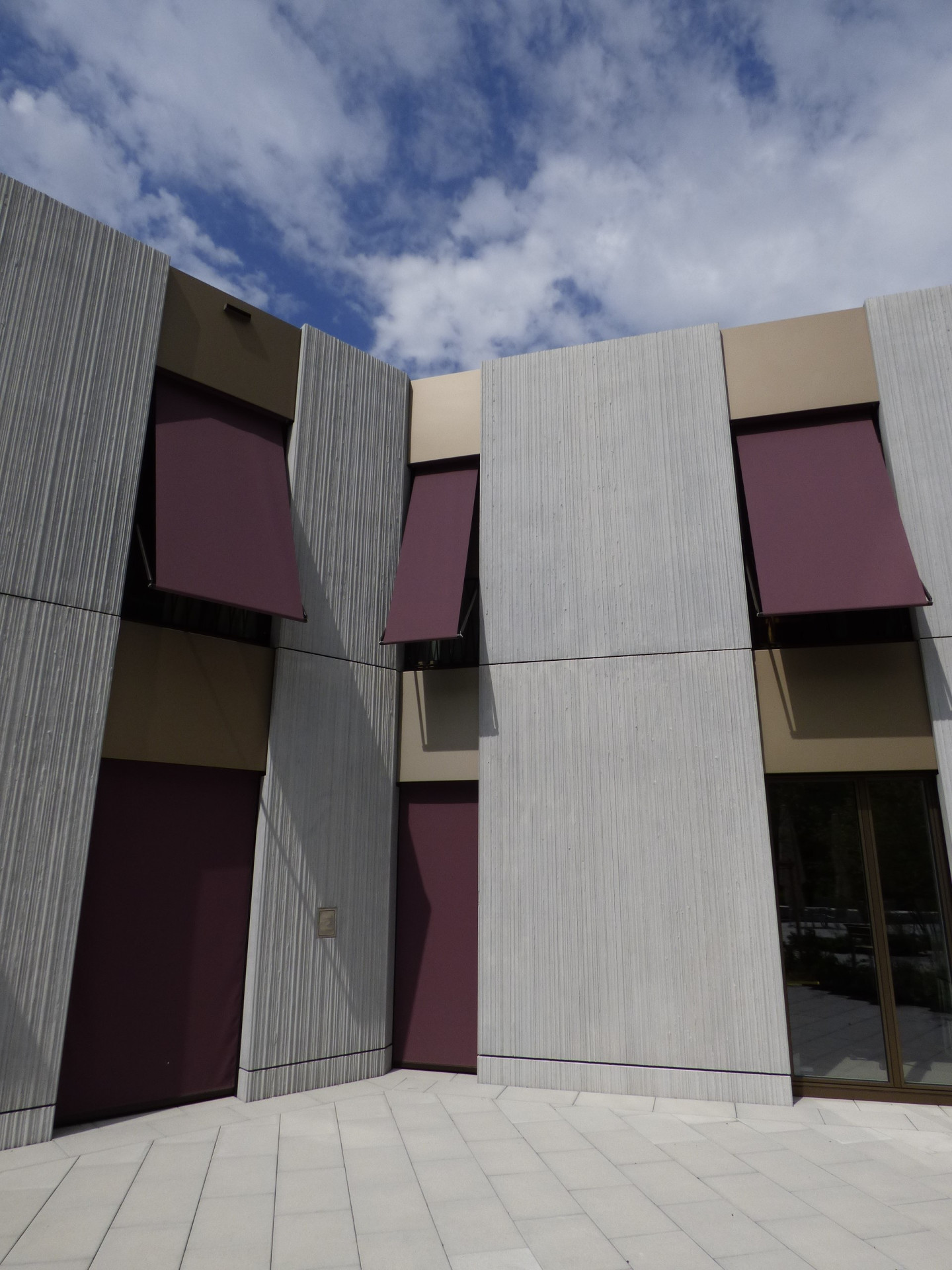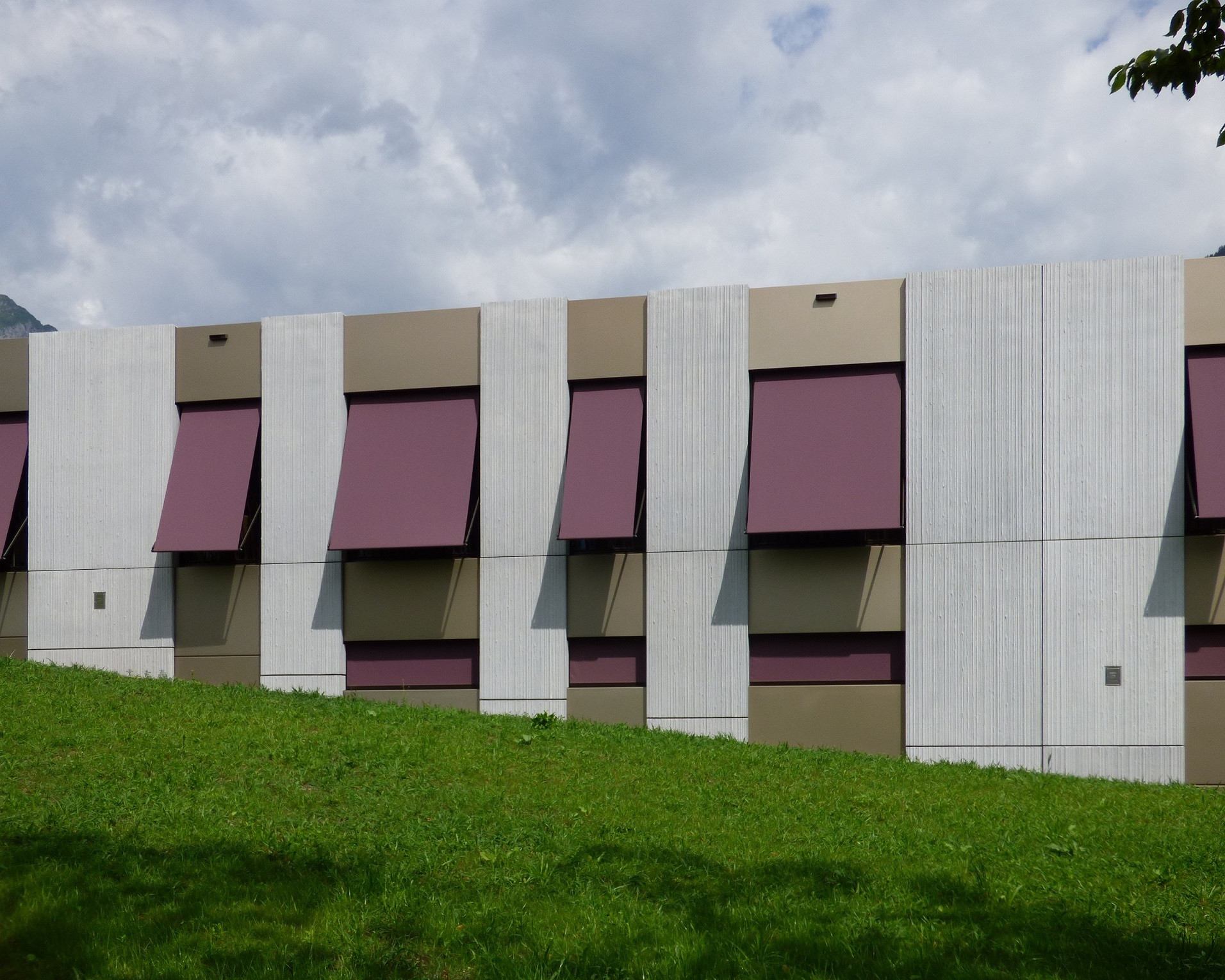 Fasáda ze sklovláknobetonových (GFRC)1 desek je stejná jako u stávajícího objektu, odlišuje se vertikálním dekorem s jemnou texturou. Firma Reckli nabízí hned několik standardních struktur matric, v tomto projektu využili architekti dvou druhů texturovaných matric ze série SELECT. Abstraktní vzor Naab s lineární texturou s různě širokými drážkami jemně rozbíjí betonovou plochu a vytváří decentní kontrast s hladkými plochami fasády Nedobytnost betonové fasády připomínající okolní masivy příhodně prořezávají francouzská okna vpouštějící dovnitř dostatek světla. Neutrální odstíny světlých betonových desek střídajících se s tlumeně bronzovými hladkými panely doplňují také výrazné, temně fialové markýzy.