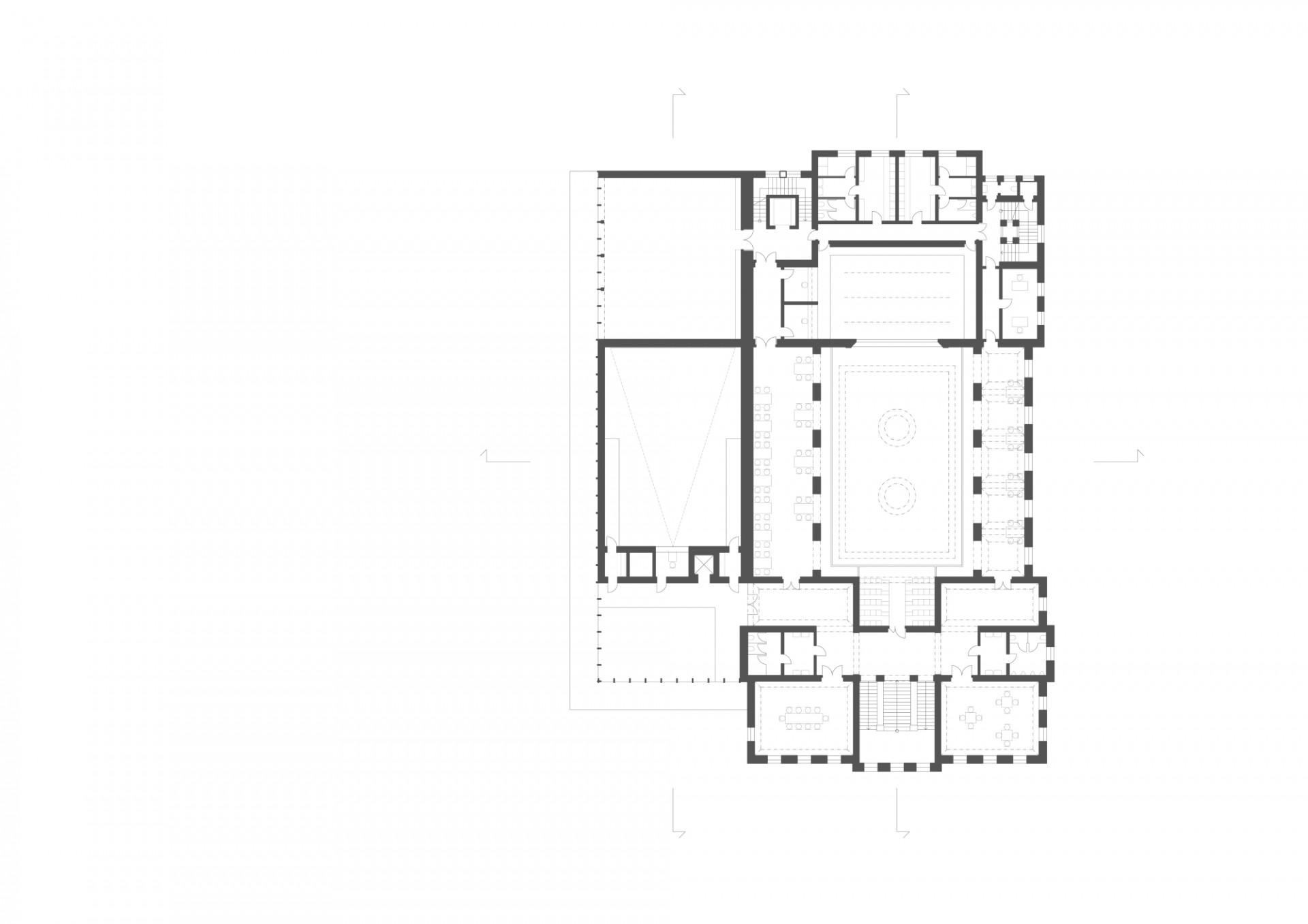 Revitalizace areálu Sokolovny v Rokycanech, Rusina Frei architekti / Martin Rusina, Martin Frei, Gabriela Sládečková, půdorys 2NP