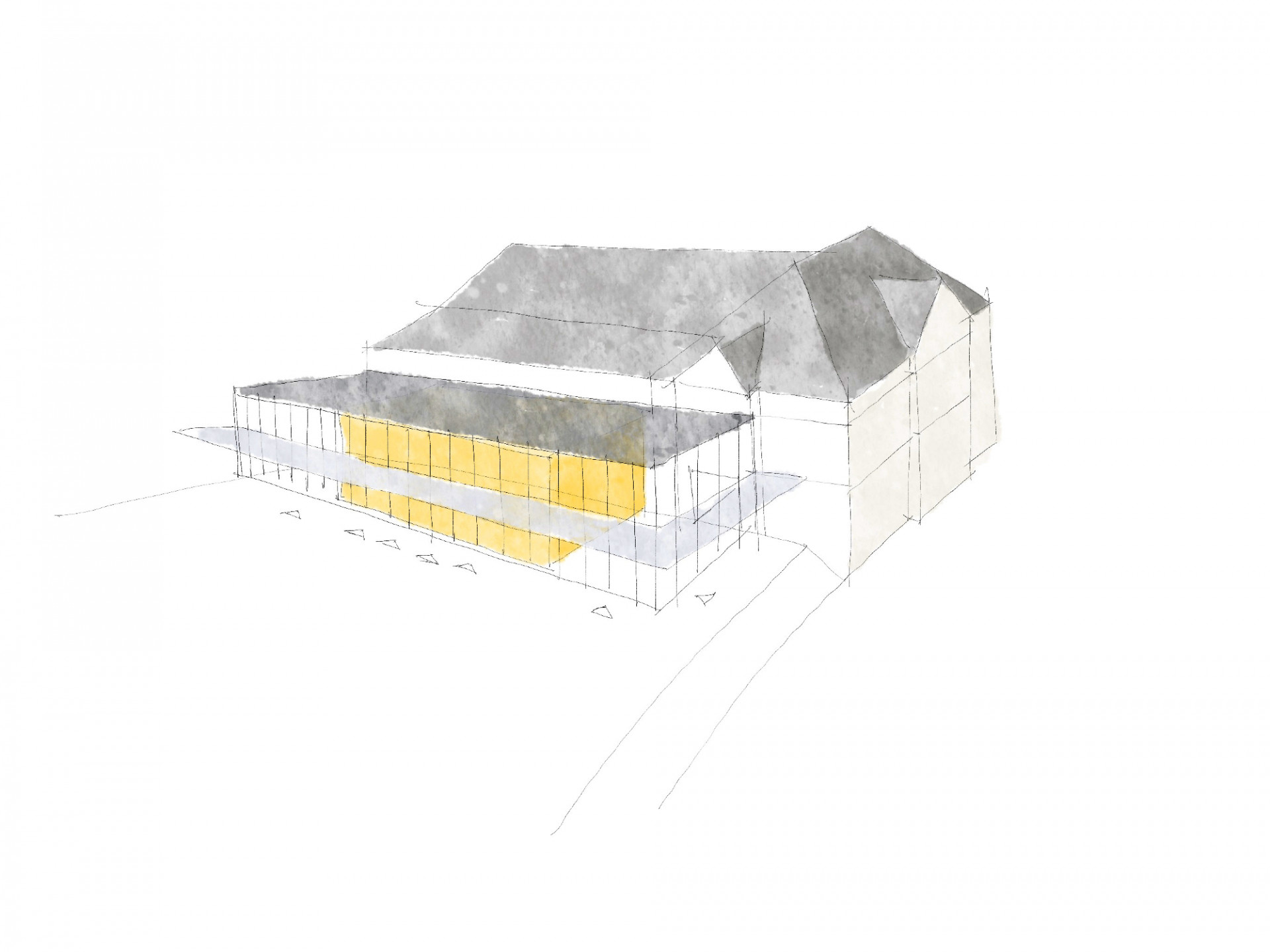Revitalizace areálu Sokolovny v Rokycanech, Rusina Frei architekti / Martin Rusina, Martin Frei, Gabriela Sládečková, skica