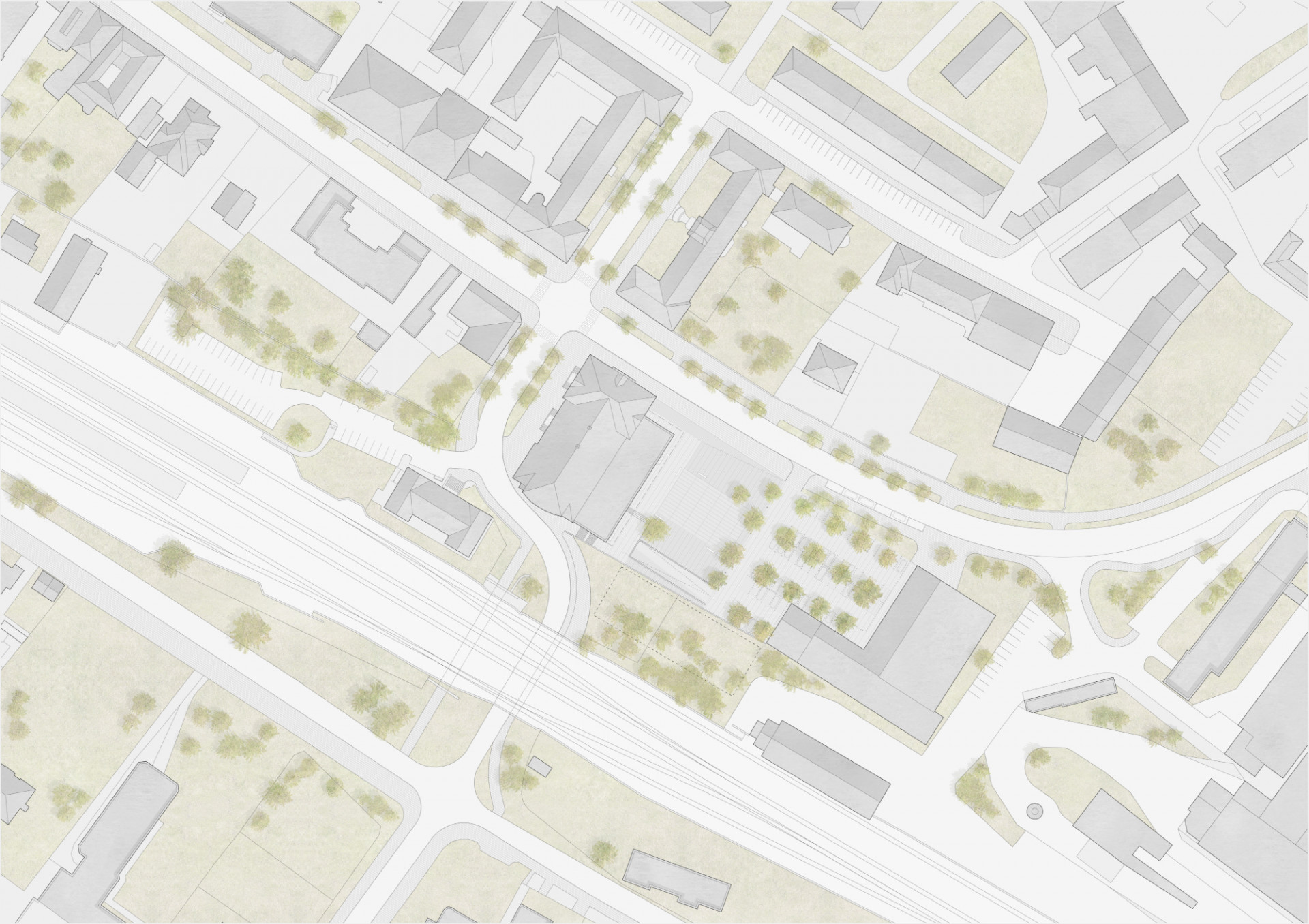 Revitalizace areálu Sokolovny v Rokycanech, Rusina Frei architekti / Martin Rusina, Martin Frei, Gabriela Sládečková, situace