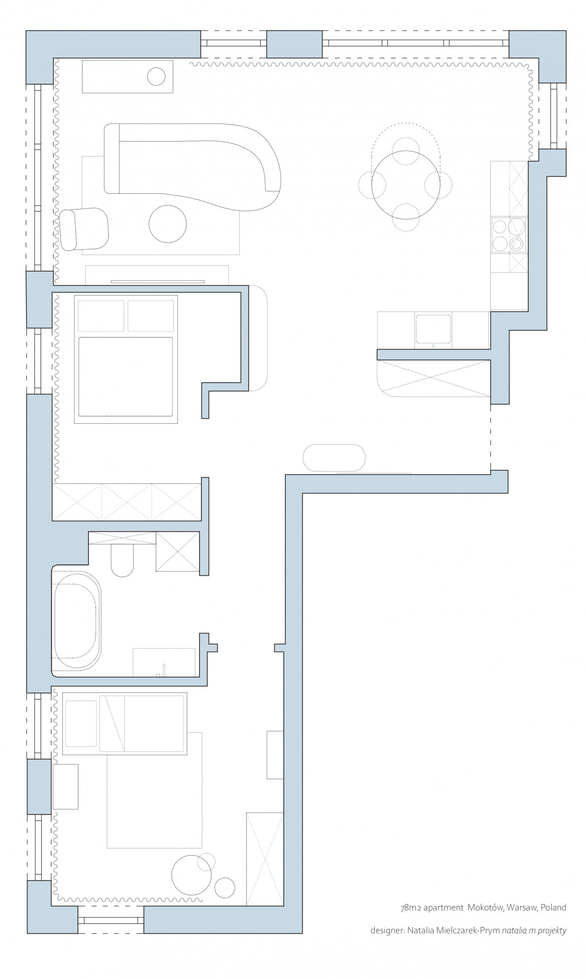 Natalia Mielczarek-Prym je polská designérka, která se svým studiem natalia m projekty sídlí v polské Lodži. Dnes ale navrhuje interiéry po celém Polsku. Její vůbec první realizací se stal byt ve Varšavě pro mladou rodinu, která se nebála experimentu.