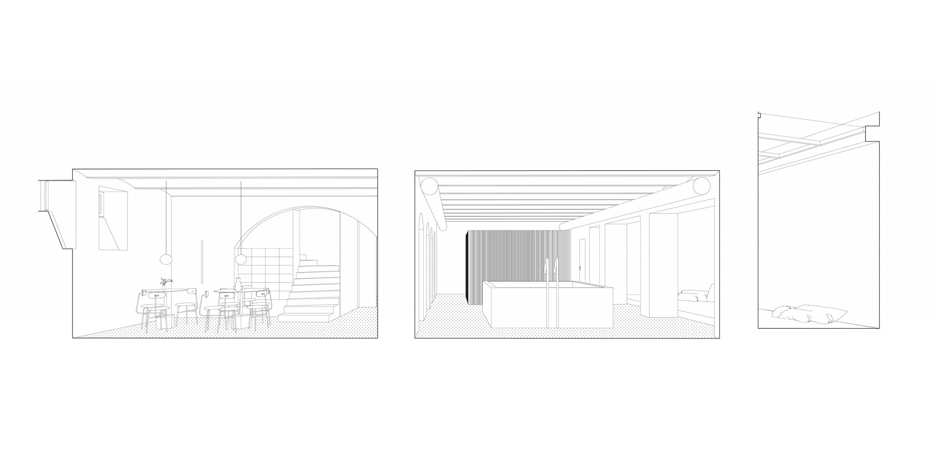 Ačkoliv jsou všechny prostory zařízeny skutečně střídmě, nepůsobí prázdně. Architekti nechali nápaditě vyniknout právě různé struktury materiálů, které dohromady tvoří efektní mozaiku. Vše nakonec doznívá v abstraktním díle Trajektorie pohybu od současného slovenského umělce Stanislava Ondruše nebo meditativním dvorku ze zátiší rostlin.