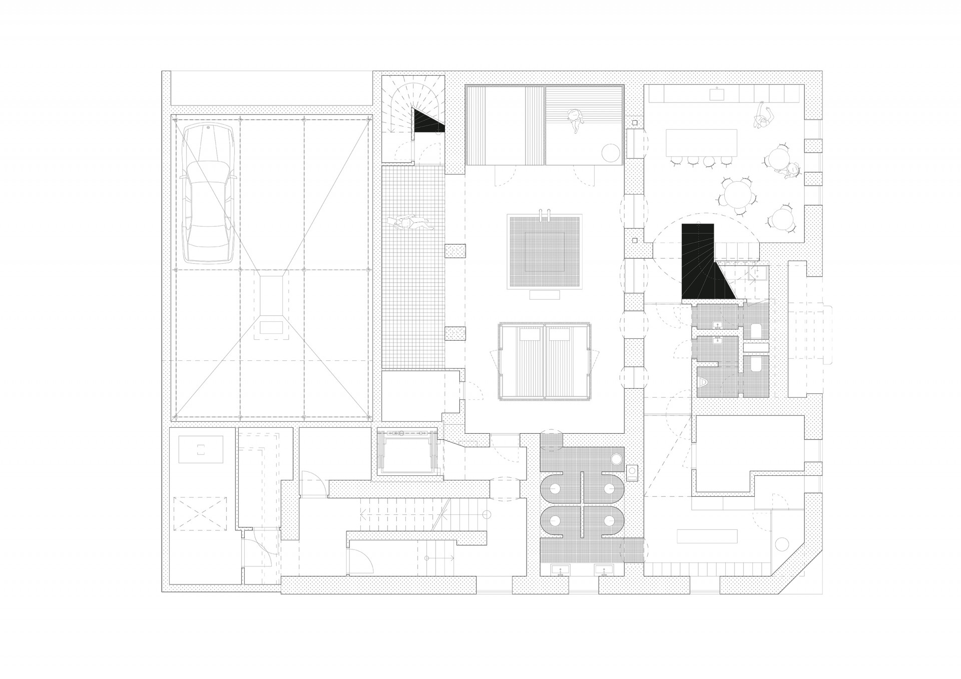 Lázeňskou tradici však není třeba chodit hledat až do Řecka. Bratislava měla svou chloubu ve formě velkolepé budovy městských lázní Grössling již od konce 19. století. Spa od ateliéru GRAU architects tak na tuto lokální tradici v komornějším měřítku navázalo. „Referencí jsou dávné městské lázně Grössling, které se nacházejí nedaleko a zprostředkovávaly návštěvníkům očistu těla a duše,“ vysvětlují architekti.