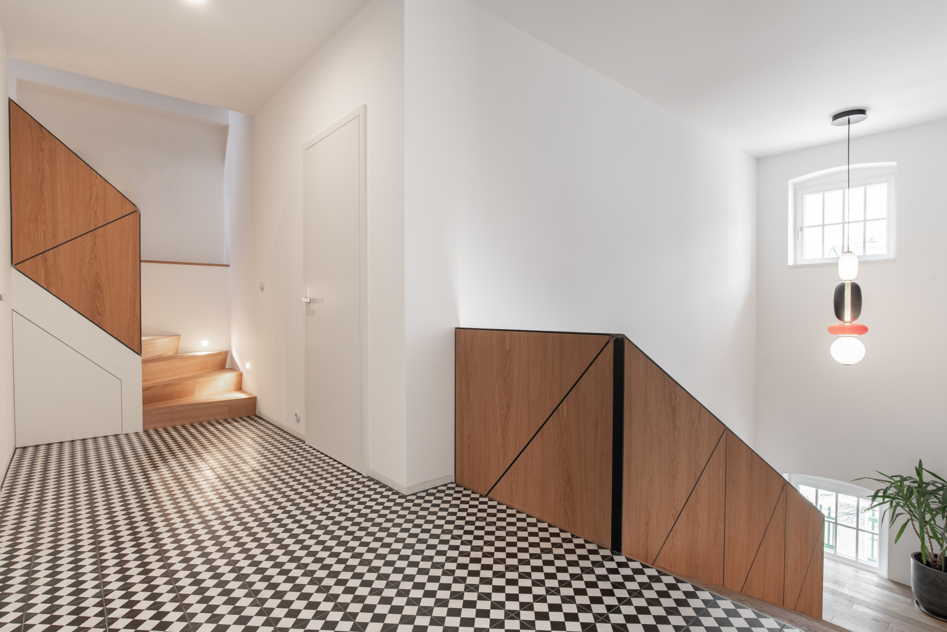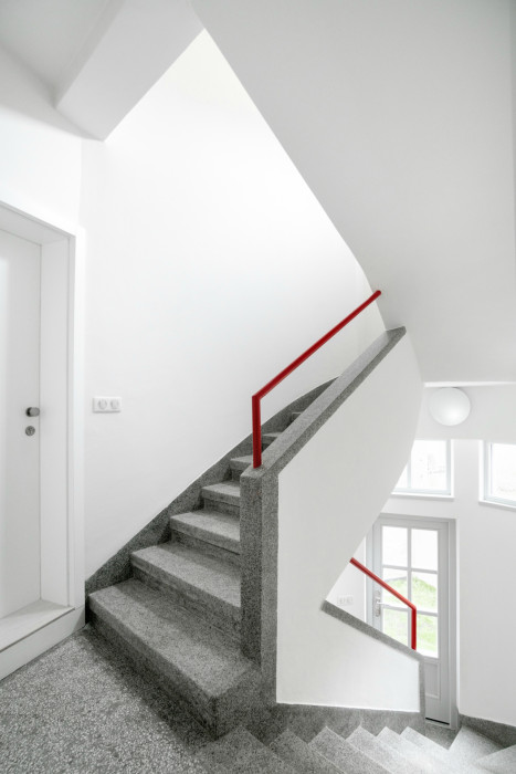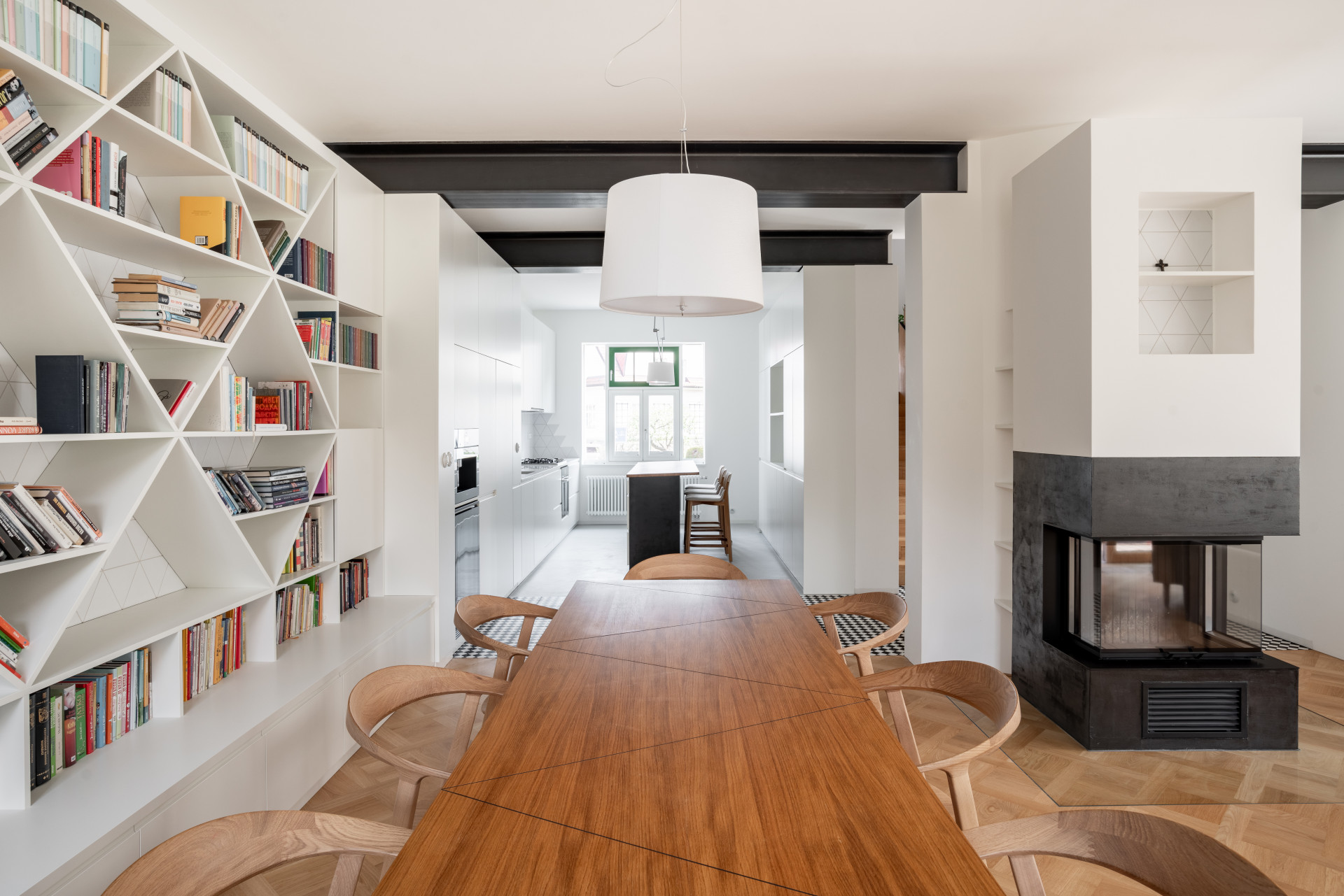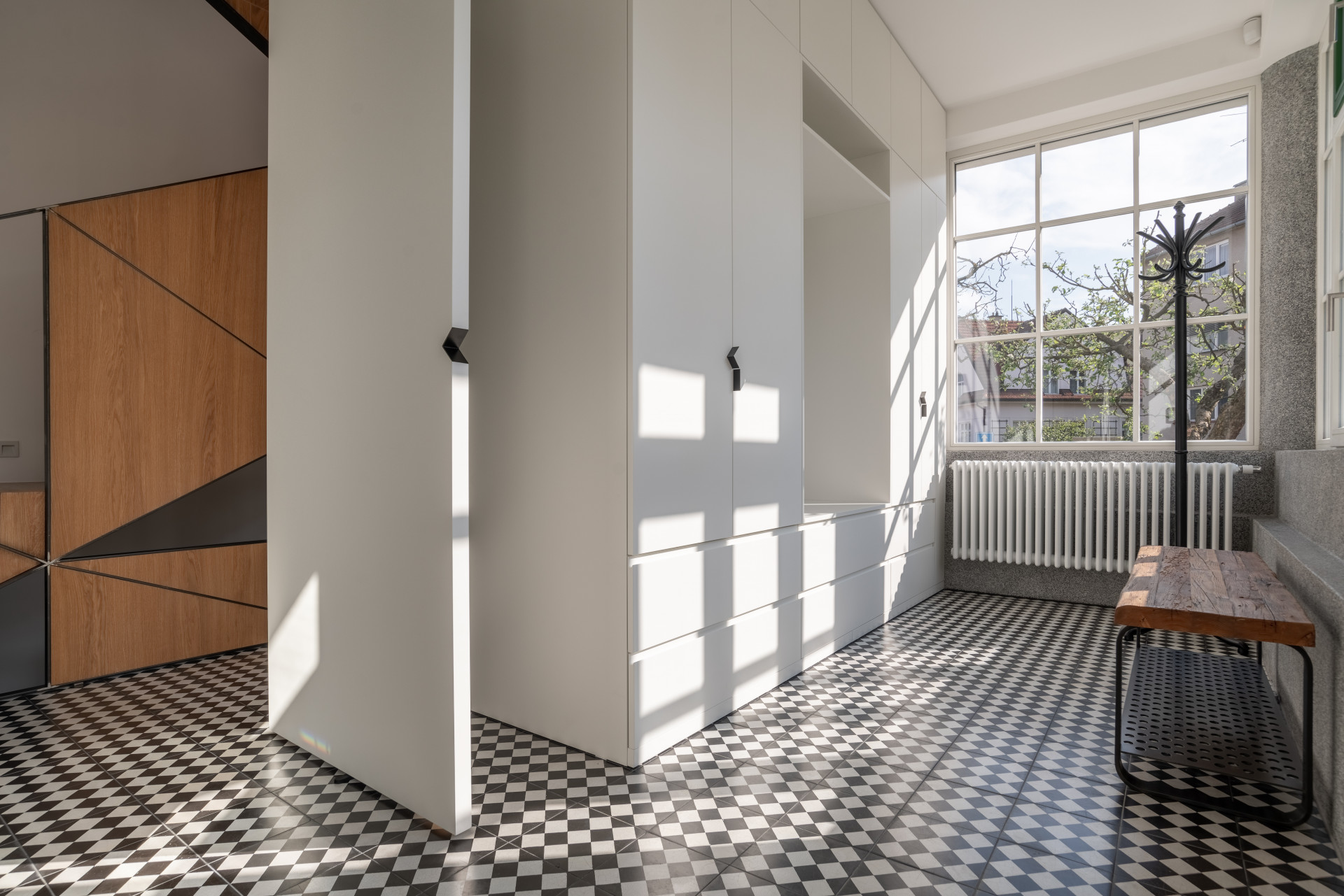 Meziválečná vila zaujme po rekonstrukci především novým trojúhelným vikýřem. Motiv rovnostranného trojúhelníku najdeme ovšem i na dalších místech brněnské vily – propisuje se tu totiž jak do detailů, tak větších celků.