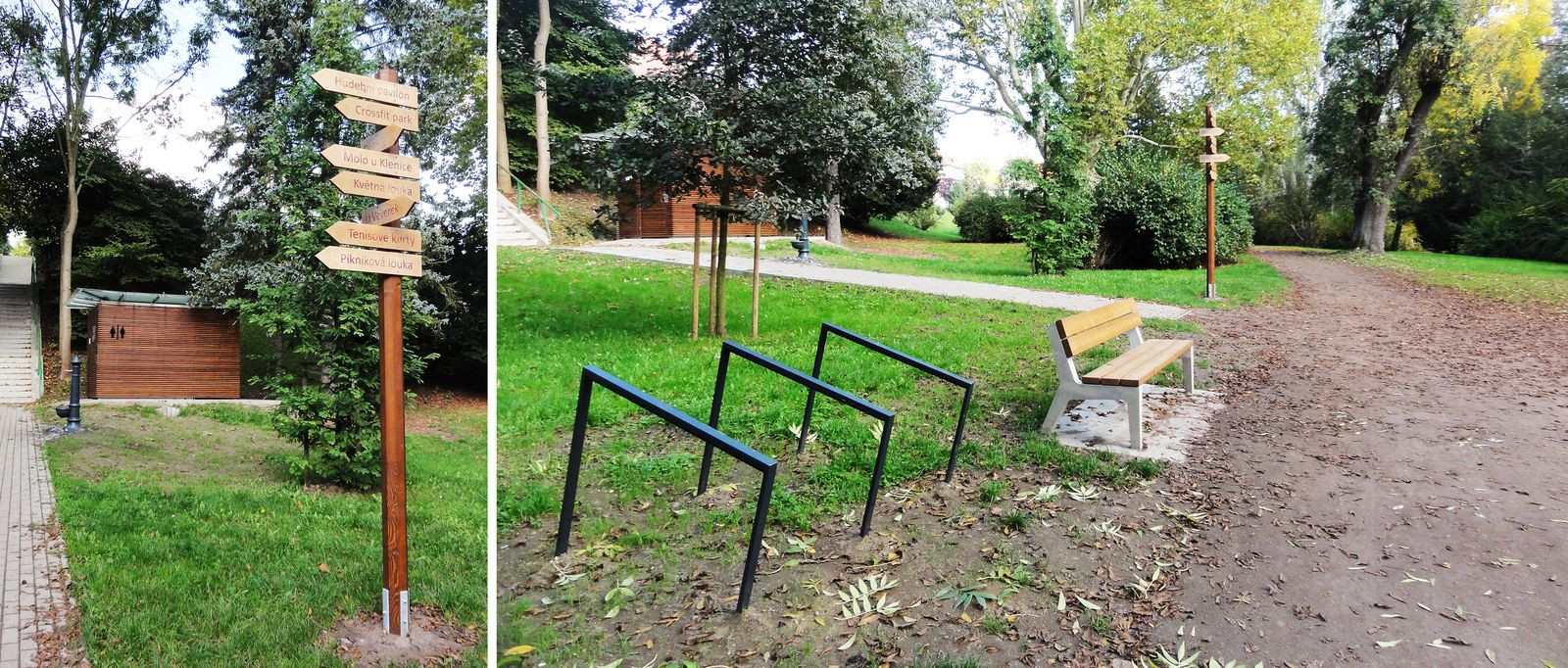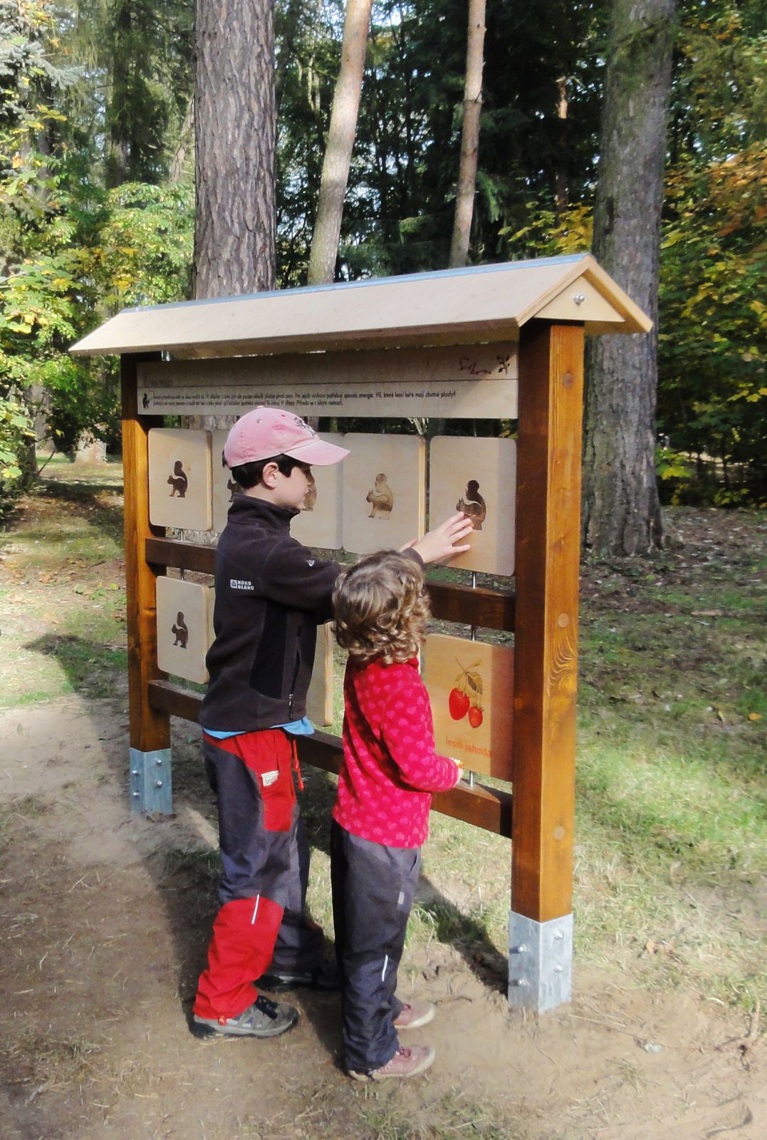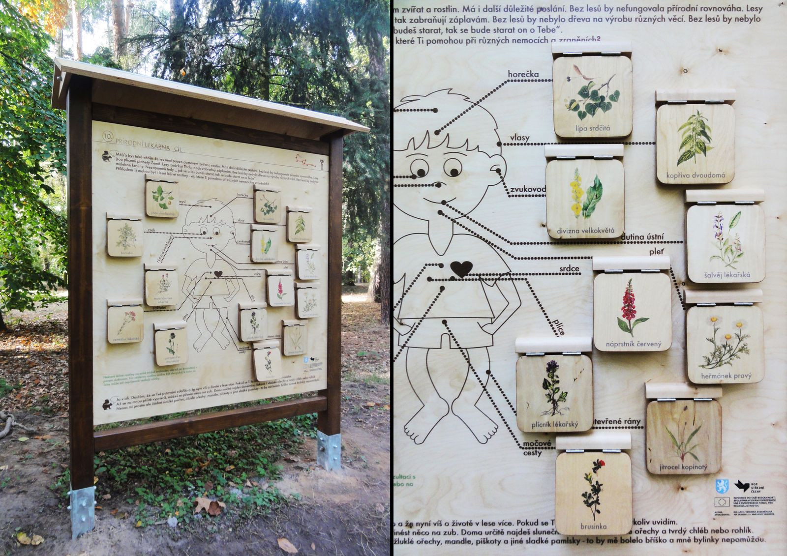 Jednotlivá stanoviště jsou celodřevěná. Všechny texty, piktogramy a obrázky jsou do dřeva vygravírovány, některé doplněny barevným tiskem se zalakováním. Jednou z hlavních náplní revitalizace se stala rekonstrukce parkových cest. To pro architektku představovalo největší oříšek – najít takovou technologii, která by cesty nezpevnila natolik, aby působily uměle. „Pro rady jsme museli až ke správcům Krkonošského národního parku,“ říká autorka projektu Pánková.