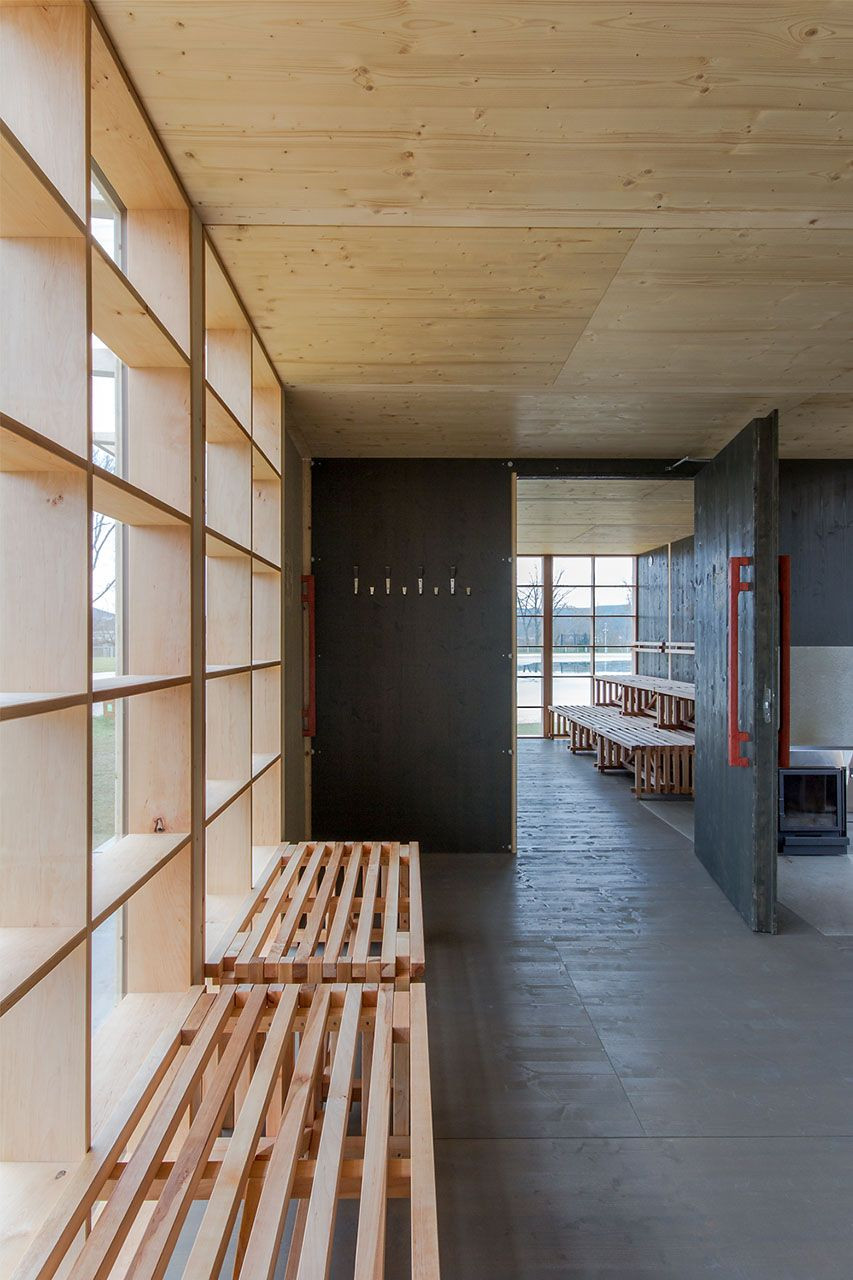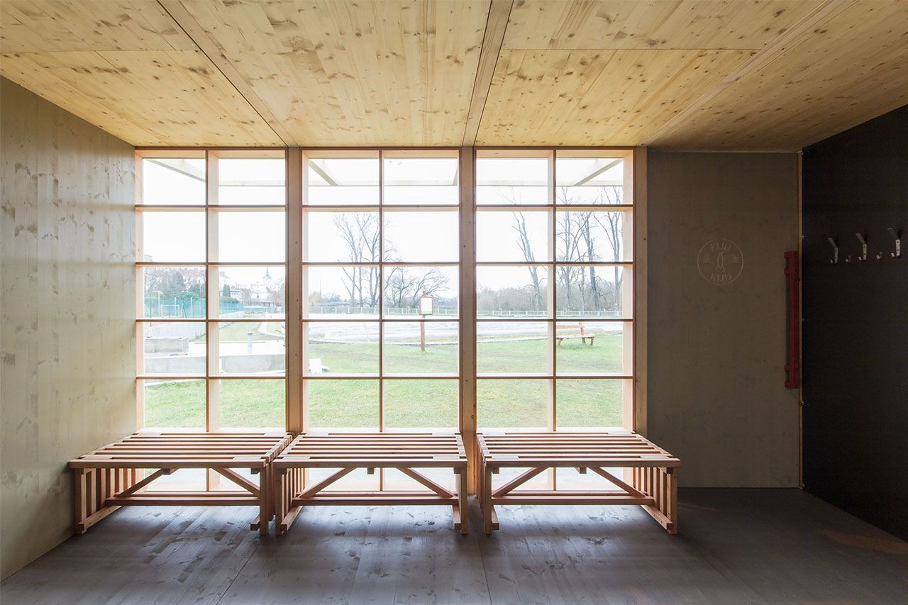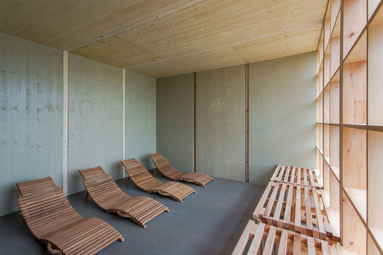 Lehká skeletová dřevěná konstrukce kotvená k ocelovým patkám je opláštěná vkládanými sendvičovými panely izolovanými dřevovláknem. Vyjímatelné stěnové panely umožňují velmi rychlou a snadnou transformaci ze sauny na altán a opačně. Tato proměna trvá necelý půlden. Čistě přírodní materiály skýtají neobvykle kvalitní zážitek a přináší na veřejné koupaliště nový estetický a funkční rozměr. Vyzkoušejte! KIJUKIJU je vášeň, v Radotíně veřejně přístupná.