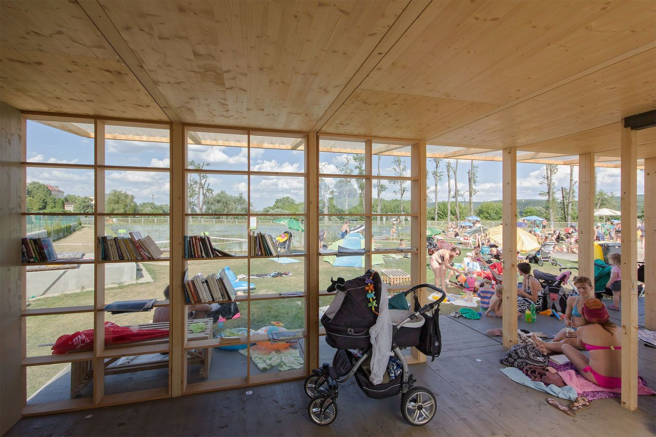 Sauna a altán KIJUKIJU - v zimně si užíváte dokonalou finskou saunu vytápěnou pravými finskými kamny na dřevo s velkolepým výhledem na vodní hladinu radotínského Biotopu. Následně se ochladíte v jeho průzračné ledové vodě a spočinete na molu s hvězdami nad vámi. Před dalším prohřátím rozjímáte v odpočívárně s ohněm v kamnech a výhledem na kořenové jezírko a radotínský kostel. V létě vám altán poskytuje příjemný stín a klidné místo pro odpočinek s knihou a studeným nápojem. Oba – altán i sauna - ideálně doplňují funkci přírodního koupaliště a při tom je to jen jeden objekt.