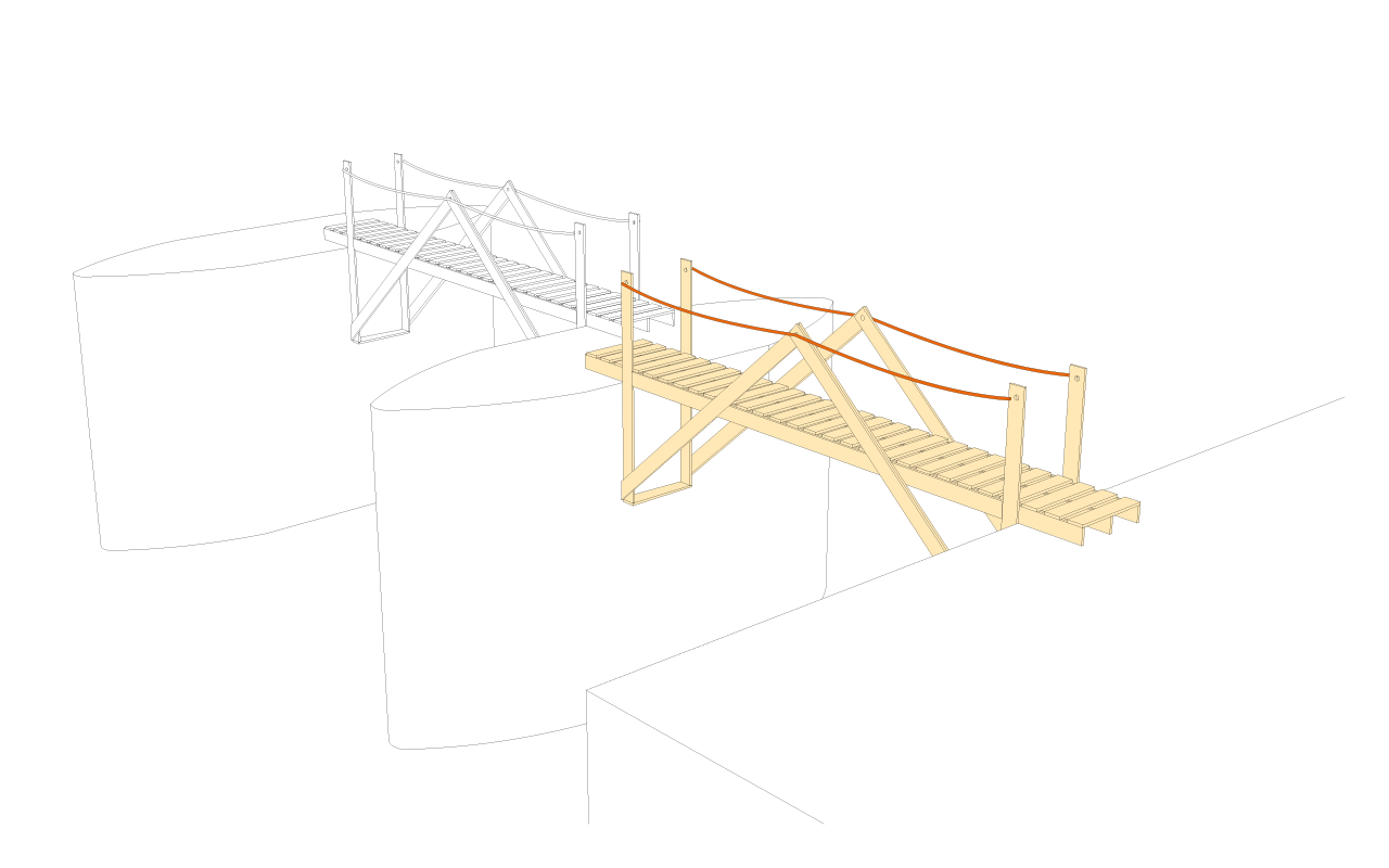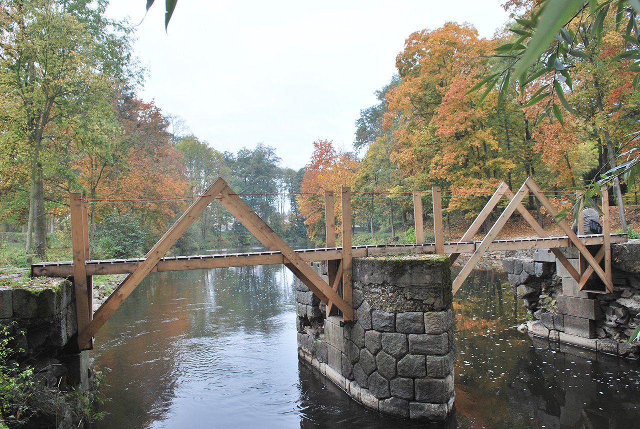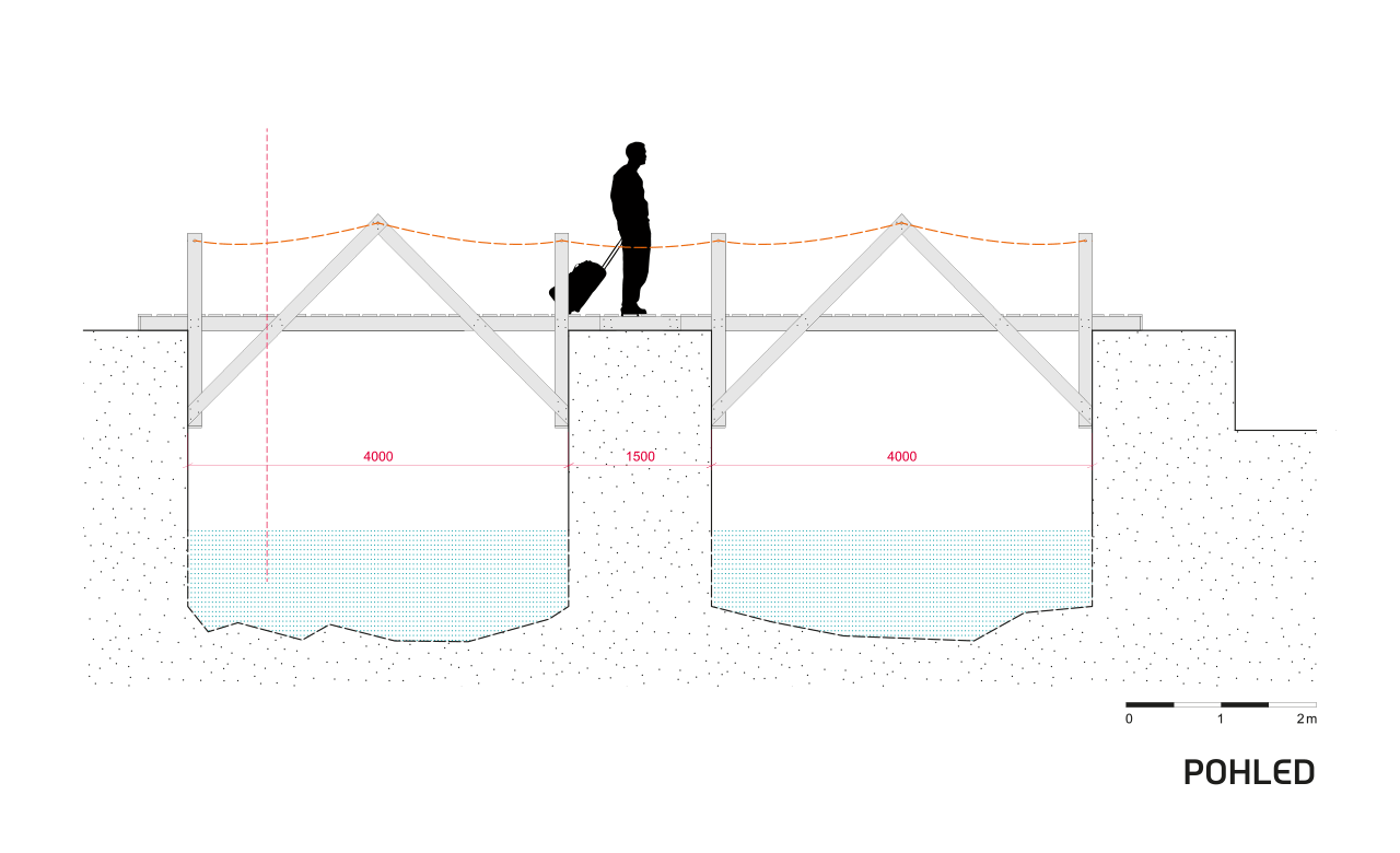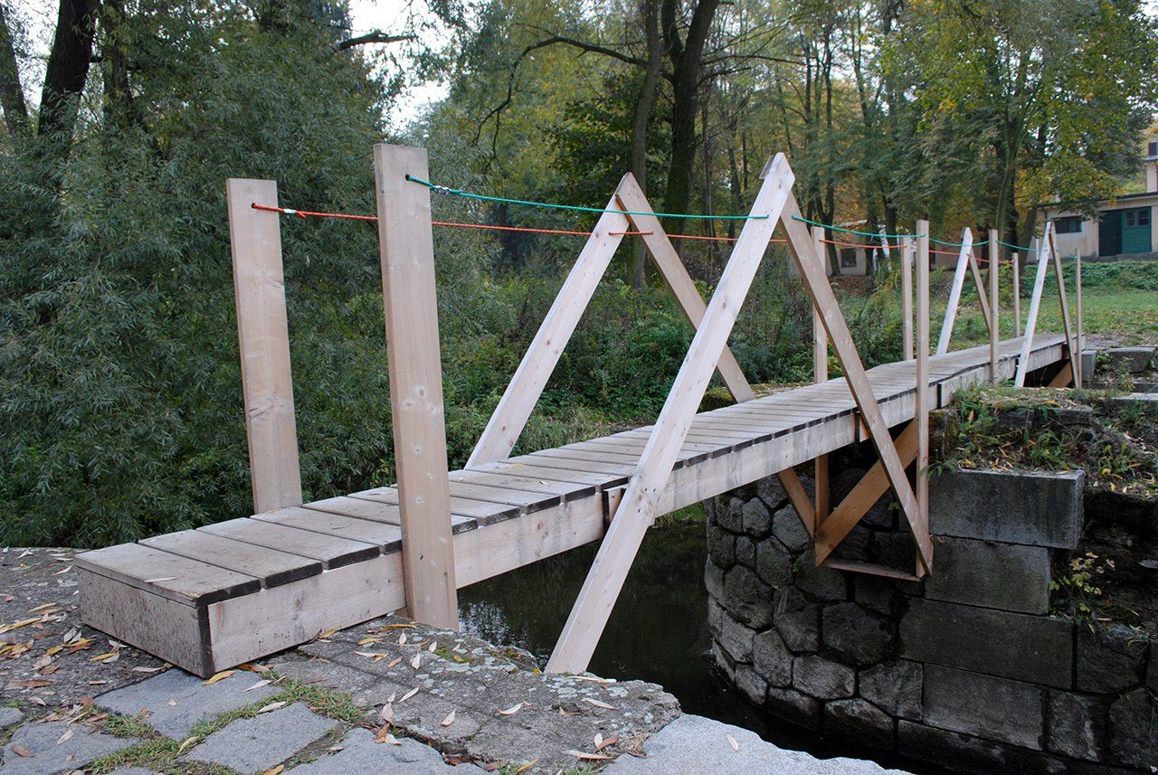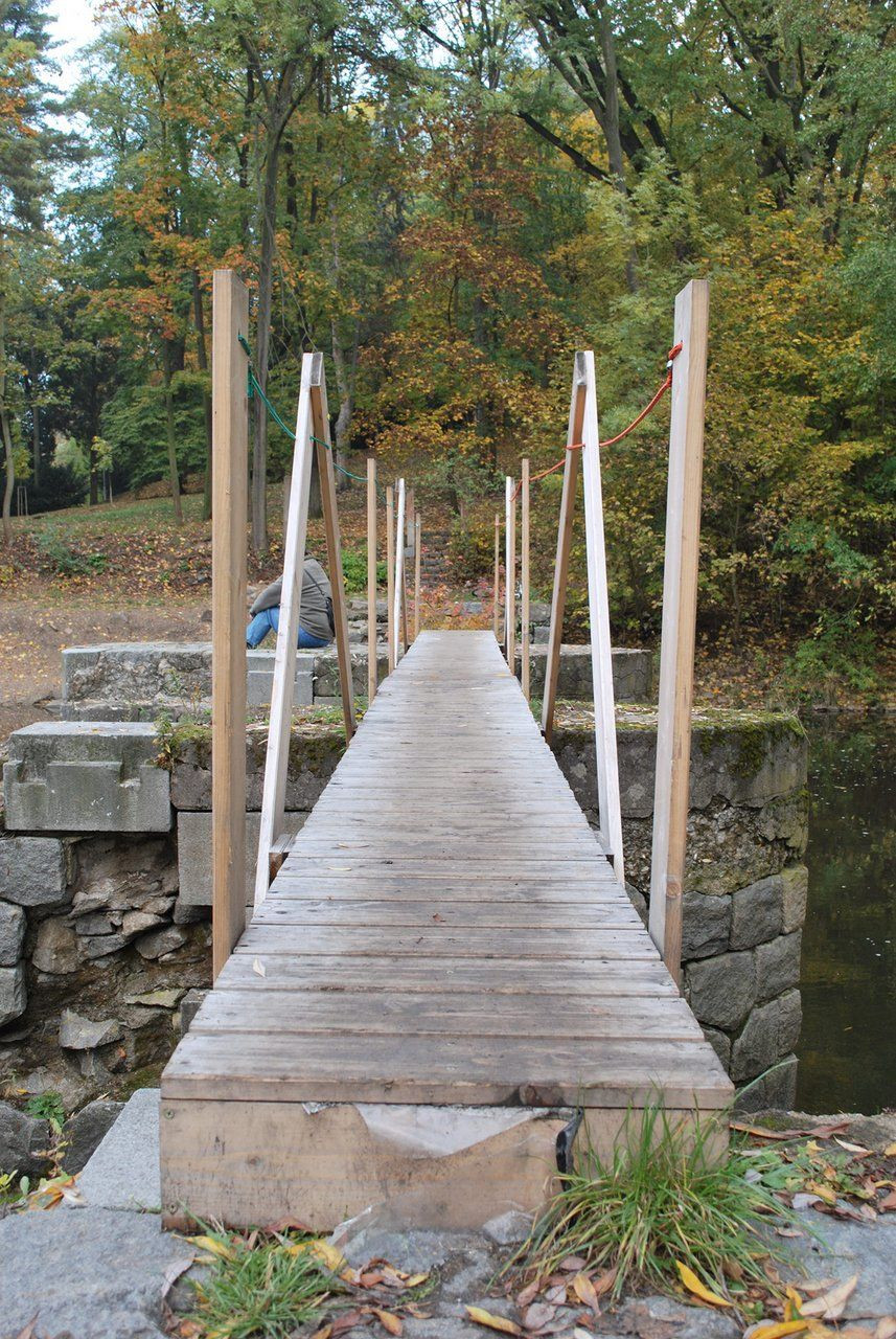 Pořadatelé pardubického festivalu na břehu řeky Chrudimky loni vyřešili přístup do areálu velice šikovně – využili torzo bývalého jezu jako pilíře pro dvě lapidární dřevěné lávky. Autoři návrhu ze studia MIXAGE navíc museli zohlednit technické a finanční požadavky pořadatelů, a tak šlo jen o dočasnou „instalaci“, která ani nebyla ukotvená.
