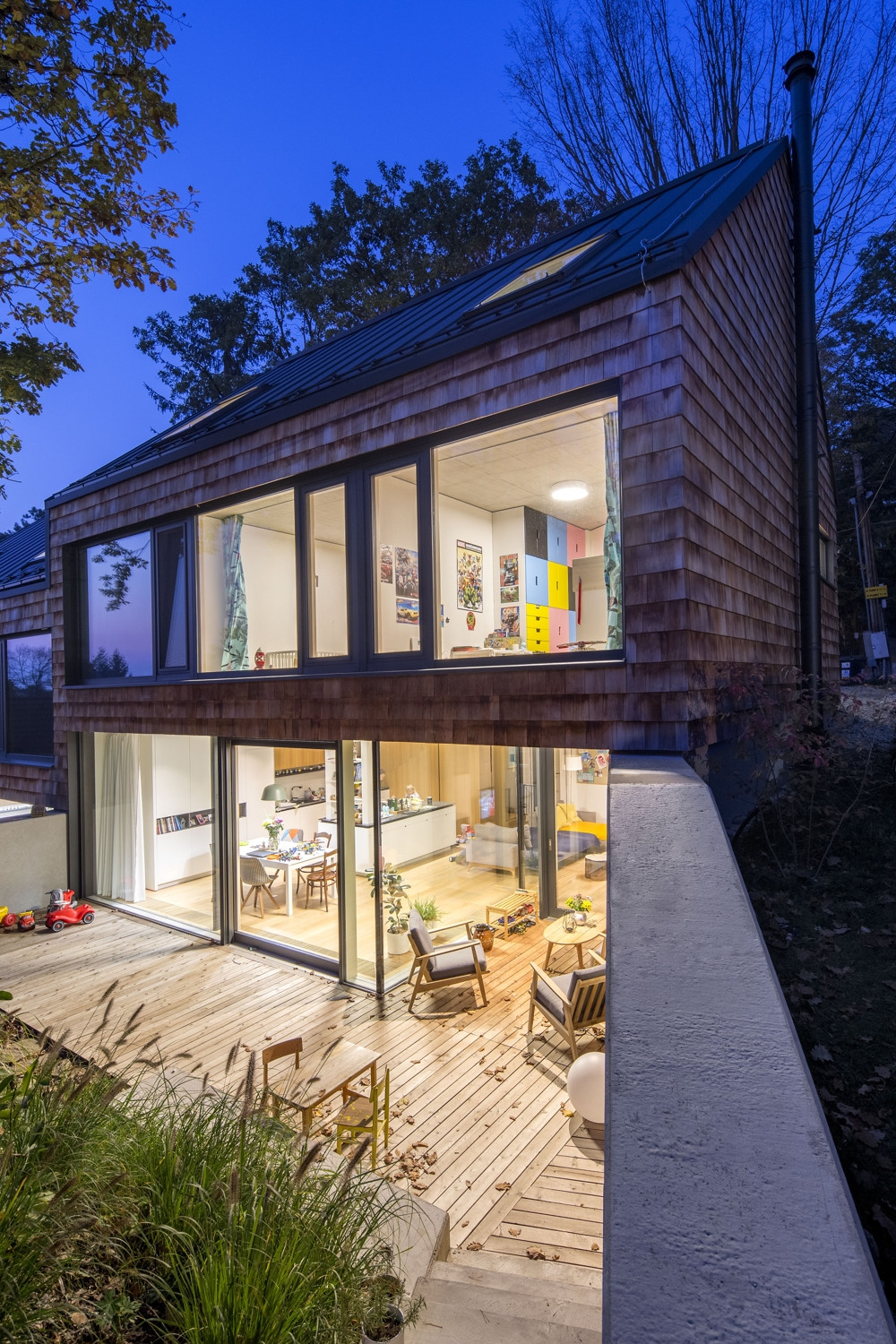Sdílený domov pro dvě rodiny. Dvojdům slovenských architektů se otevírá do okolního lesa