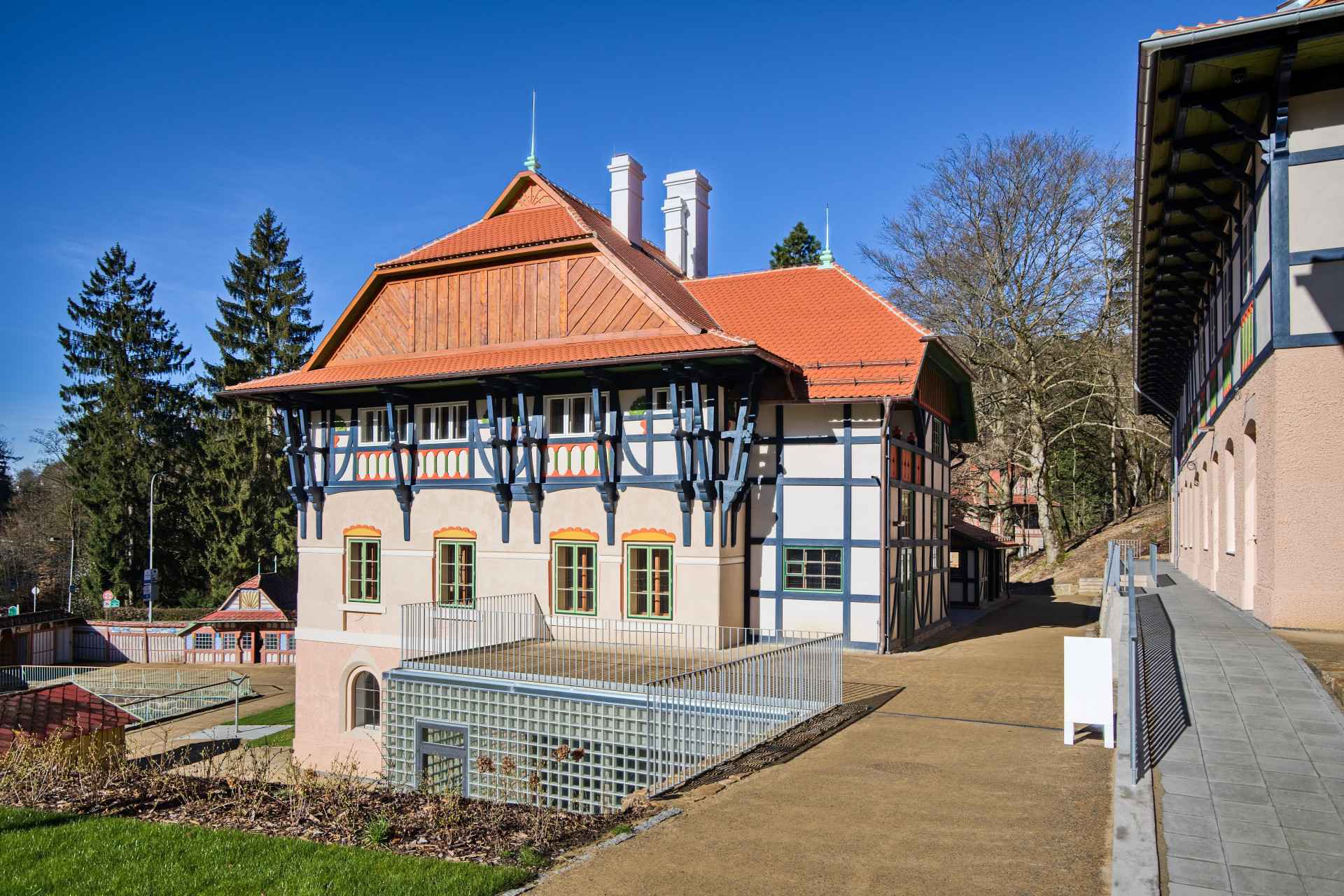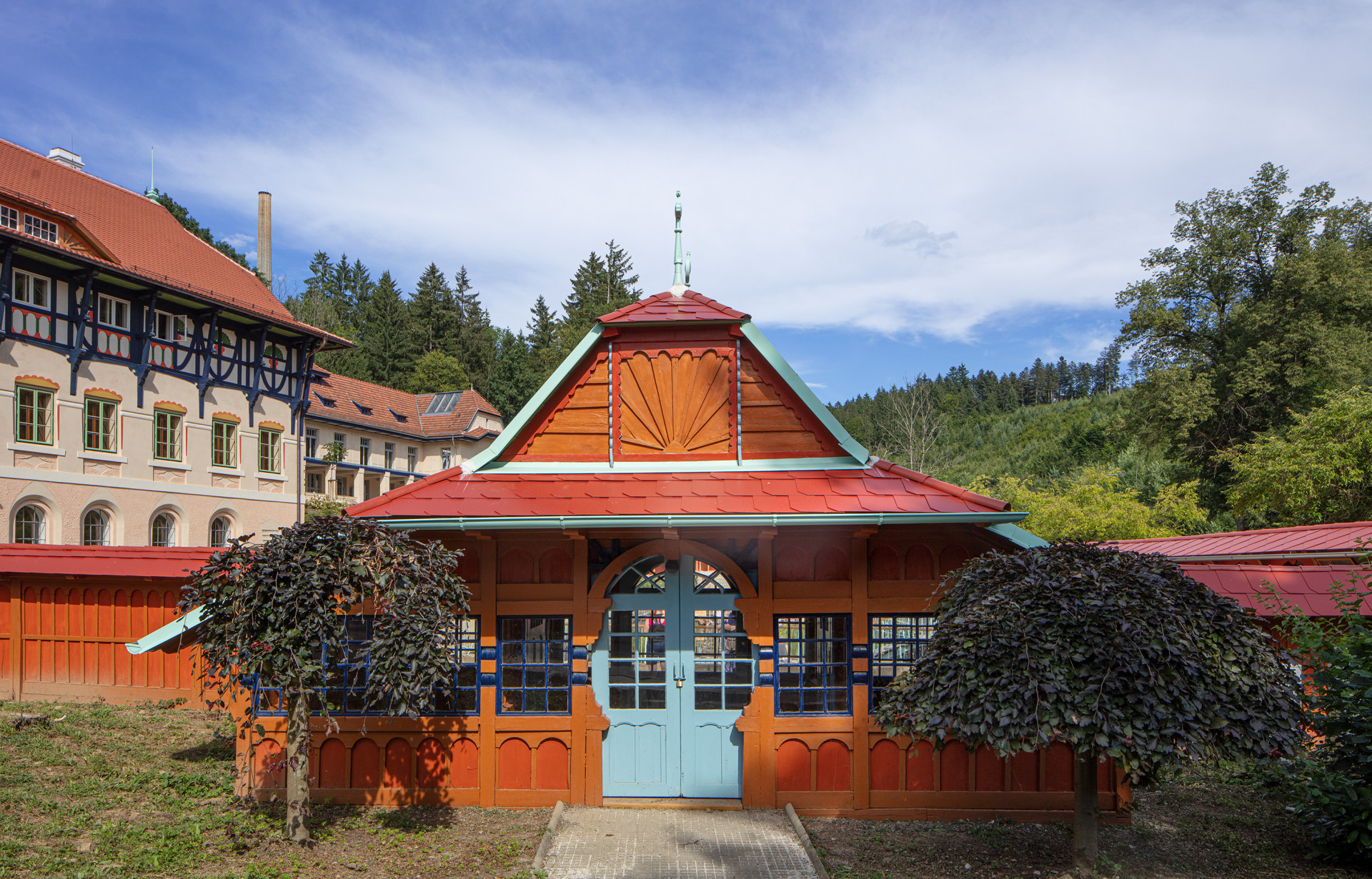 „Na těchto objektech jsem oceňoval kontextuální přístup v prostředí Jurkovičových staveb, ale necítil jsem se tolik vázán jejich původní podobou,“ říká k těmto stavbám Petr Všetečka. Přístup k rekonstrukci areálu to velmi dobře vystihuje. Zatímco architektura od Dušana Jurkoviče se obnovovala dle historické dokumentace a vyrábělo se do ní vybavení podle dobových fotografií, u dalších objektů se postupovalo volněji – především tedy v jejich interiérech.