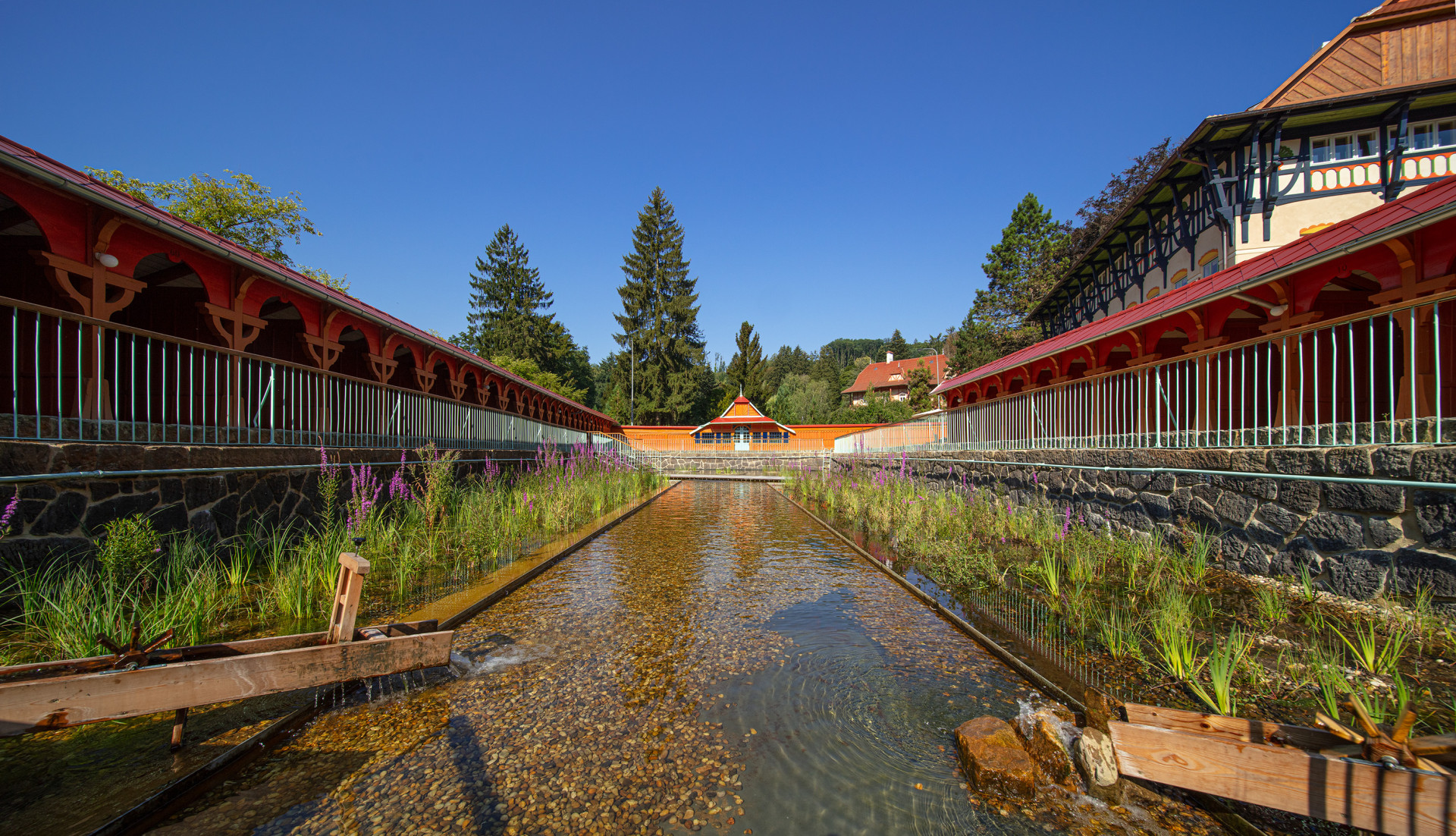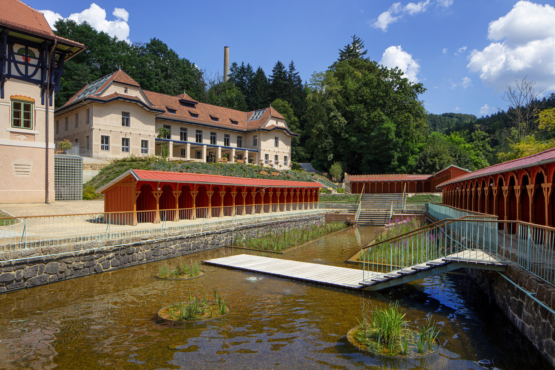 Z tohoto důvodu se Vodoléčebný ústav obnovoval vůbec nejdůsledněji. Cílem bylo vrátit mu podobu z roku 1902, kdy vznikl přestavbou původního mlýna. Uvnitř se tehdy zřídily vodoléčebné místnosti, převlékárny a odpočívárna, postupem 20. století ovšem tohle vše převrstvily nové úpravy. Při nynější rekonstrukci se podařilo mnoho z původního najít – třeba ochlazovací bazénky nebo dokonce odtoková strouha starého mlýna. Obojí se nyní nachází v interiéru muzea, na které se Vodoléčebný ústav proměnil, expozicí tak jemně zurčí voda.