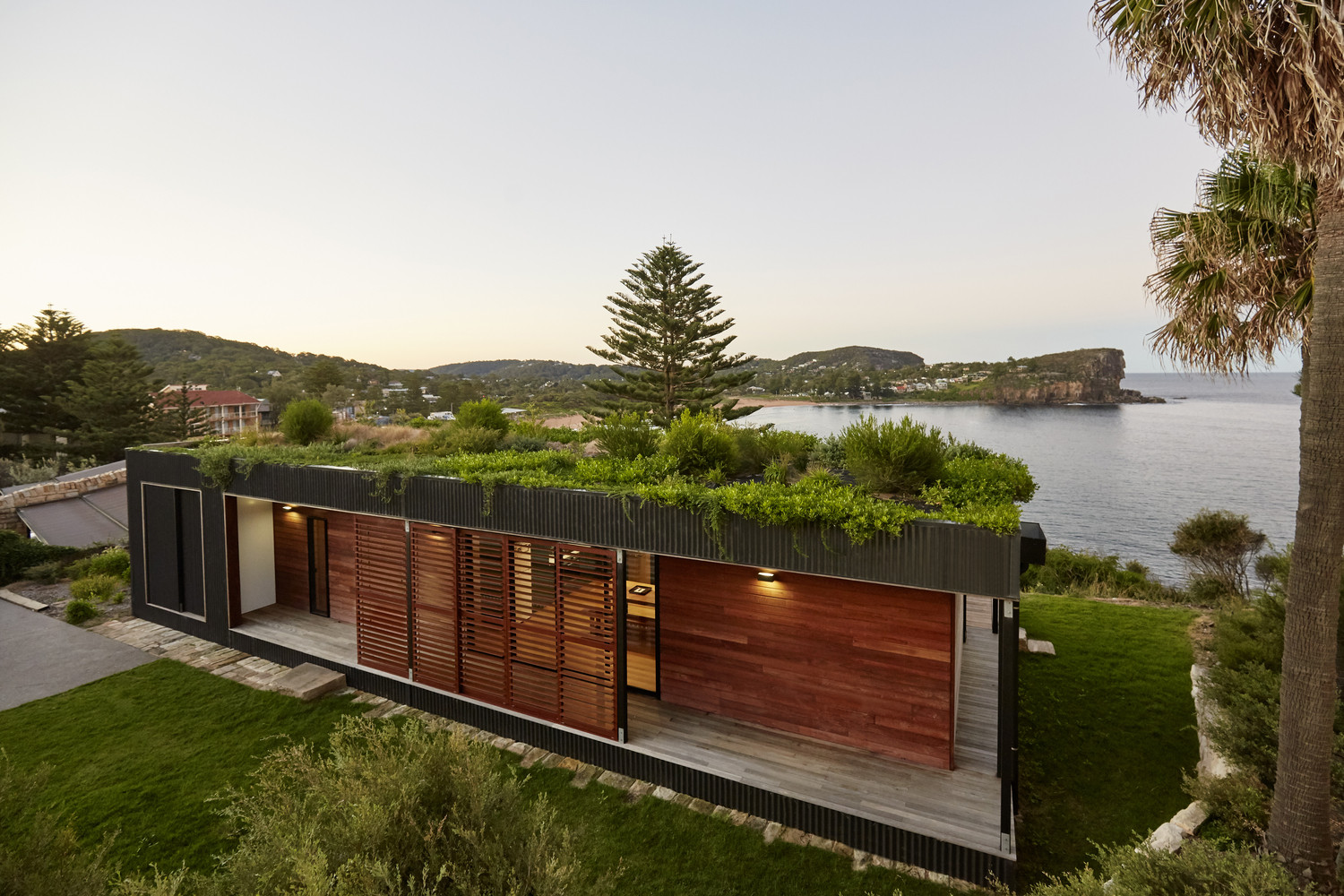 Australské společnosti ArchiBlox zaměřující se na prefabrikované modulární stavby zabrala příprava i samotná výstavba rodinného domu nad pobřežním útesem v Sydney necelých devět měsíců. Nenápadný a šetrný objekt se zelenou střechou zachytávající dešťovou vodu nabízí na relativně skromné ploše vysoký komfort bydlení.