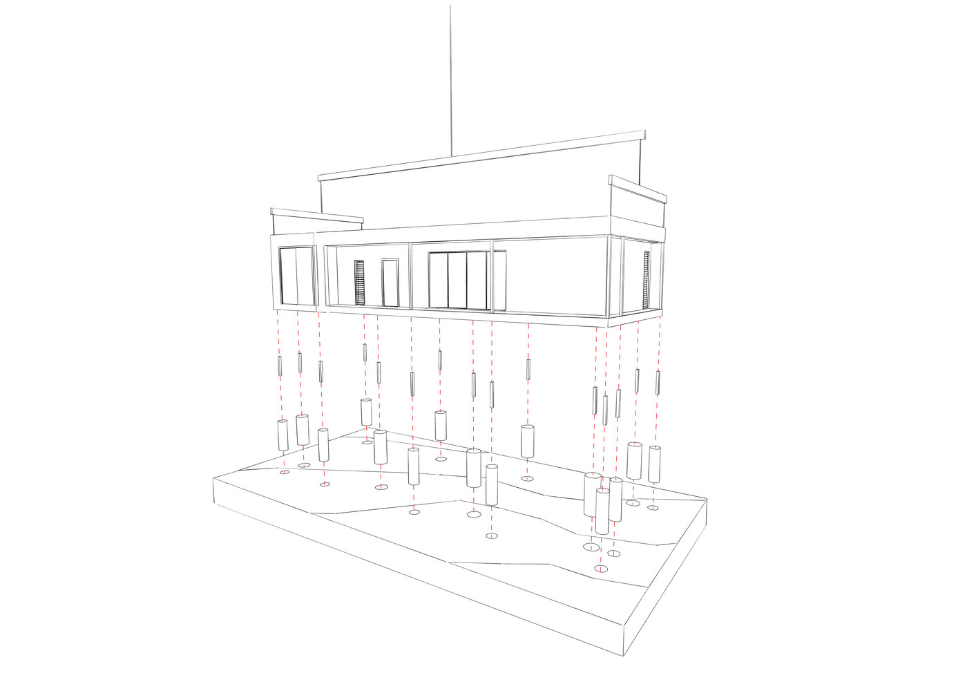 Dům se nachází na útesu Avalon Beach Cliffs v australském Sydney, odkud se otevírá výhled na vyhlášená místa pro surfování. Vzhledem k podloží mírného svahu útesu dům stojí na konstrukčních podpěrách, aby pod ním mohla přirozeně protékat voda a nedocházelo k narušení terénu.