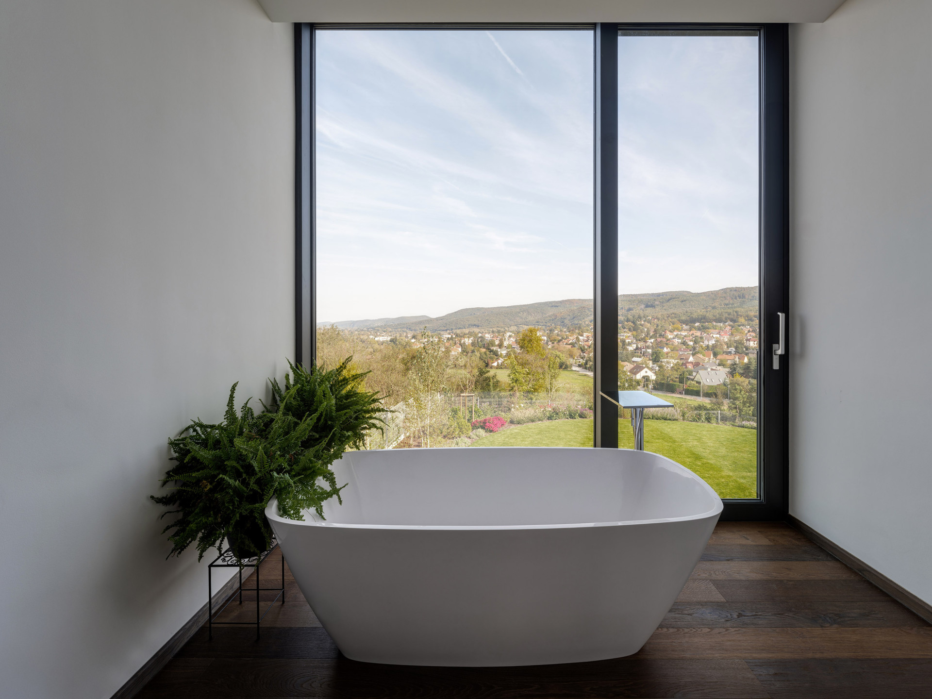Vila v těsném propojení s krajinou nabízí obyvatelům příjemný prostor pro každodenní život, který umí být otevřený i chráněný, podle toho, jak je zrovna potřeba.