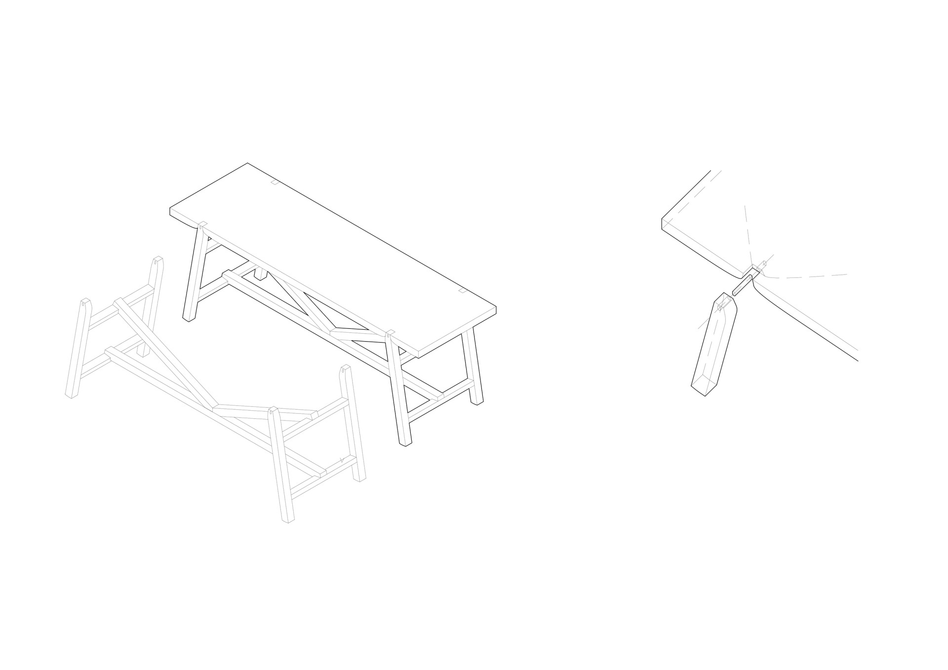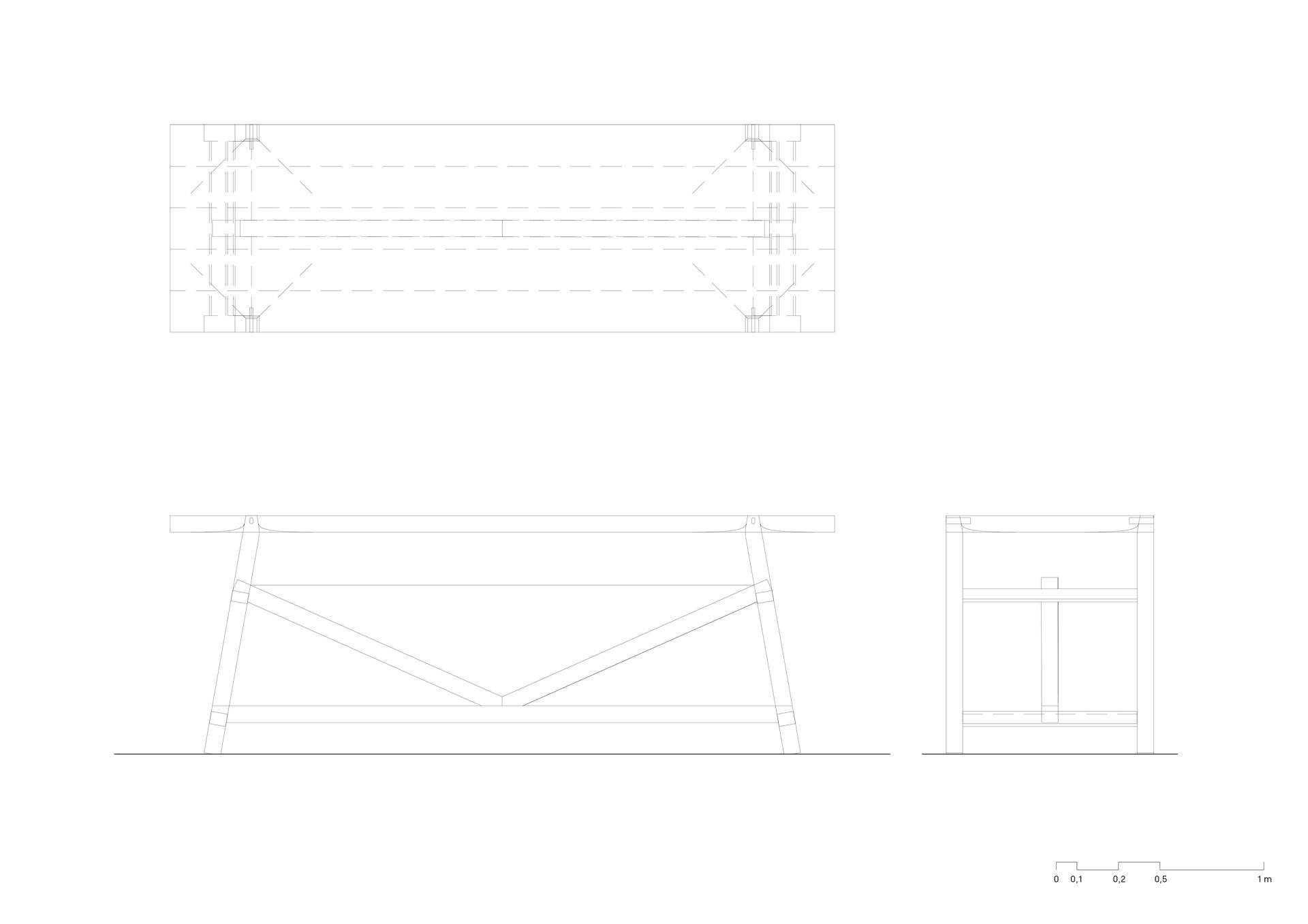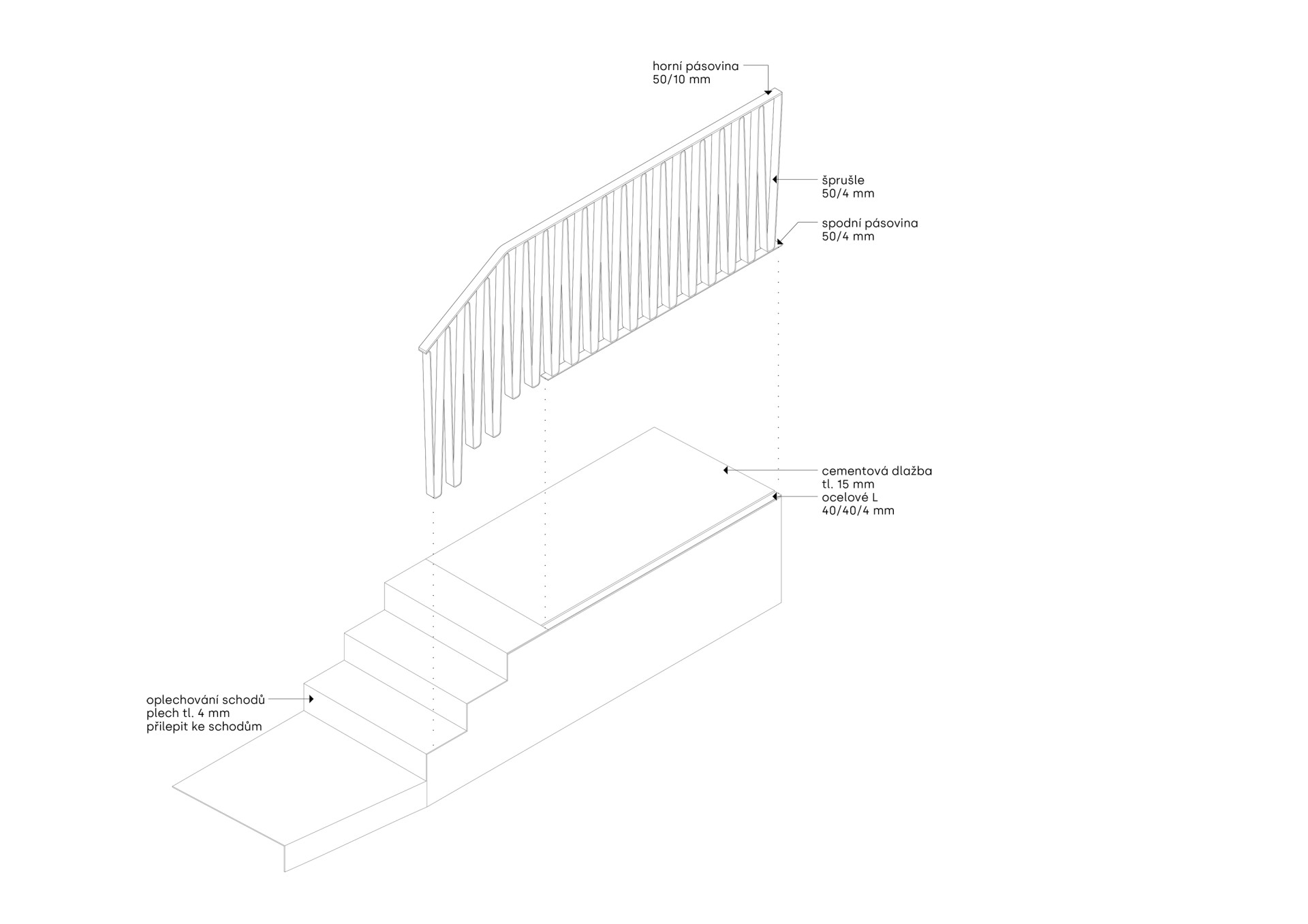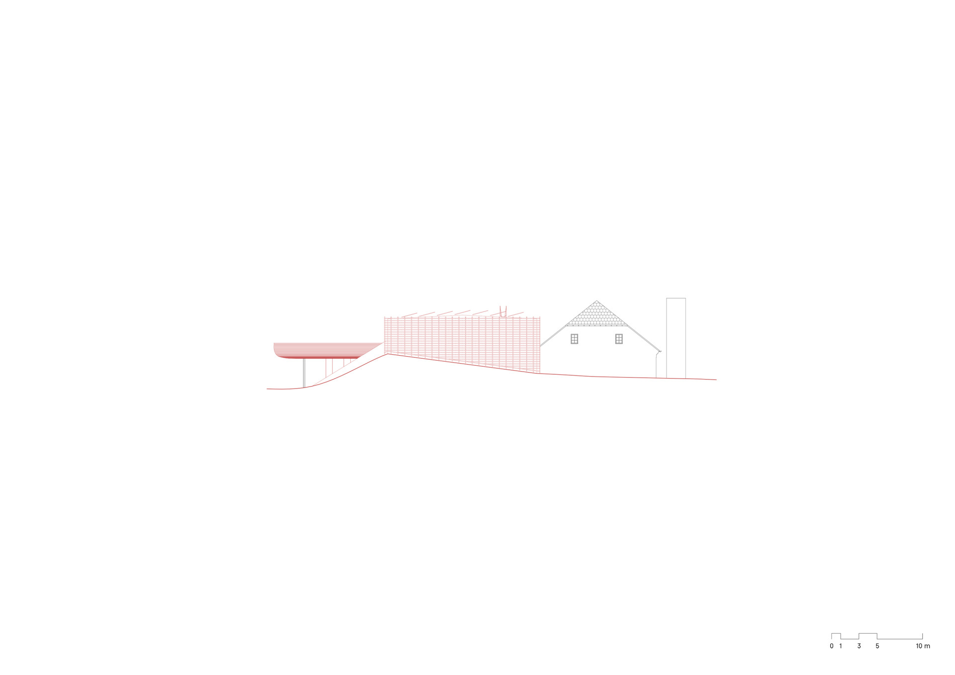 „Fasáda má dvě úrovně – vnější řídká treláž, která slouží jako opora pro popínavé rostliny, a vnitřní husté laťování, které se místy líně sveze, aby zformovalo lavici. V místě, kde se vrstvy překrývají, akátová treláž degustační lavici stíní,“ popisují to architekti ve své autorské zprávě.