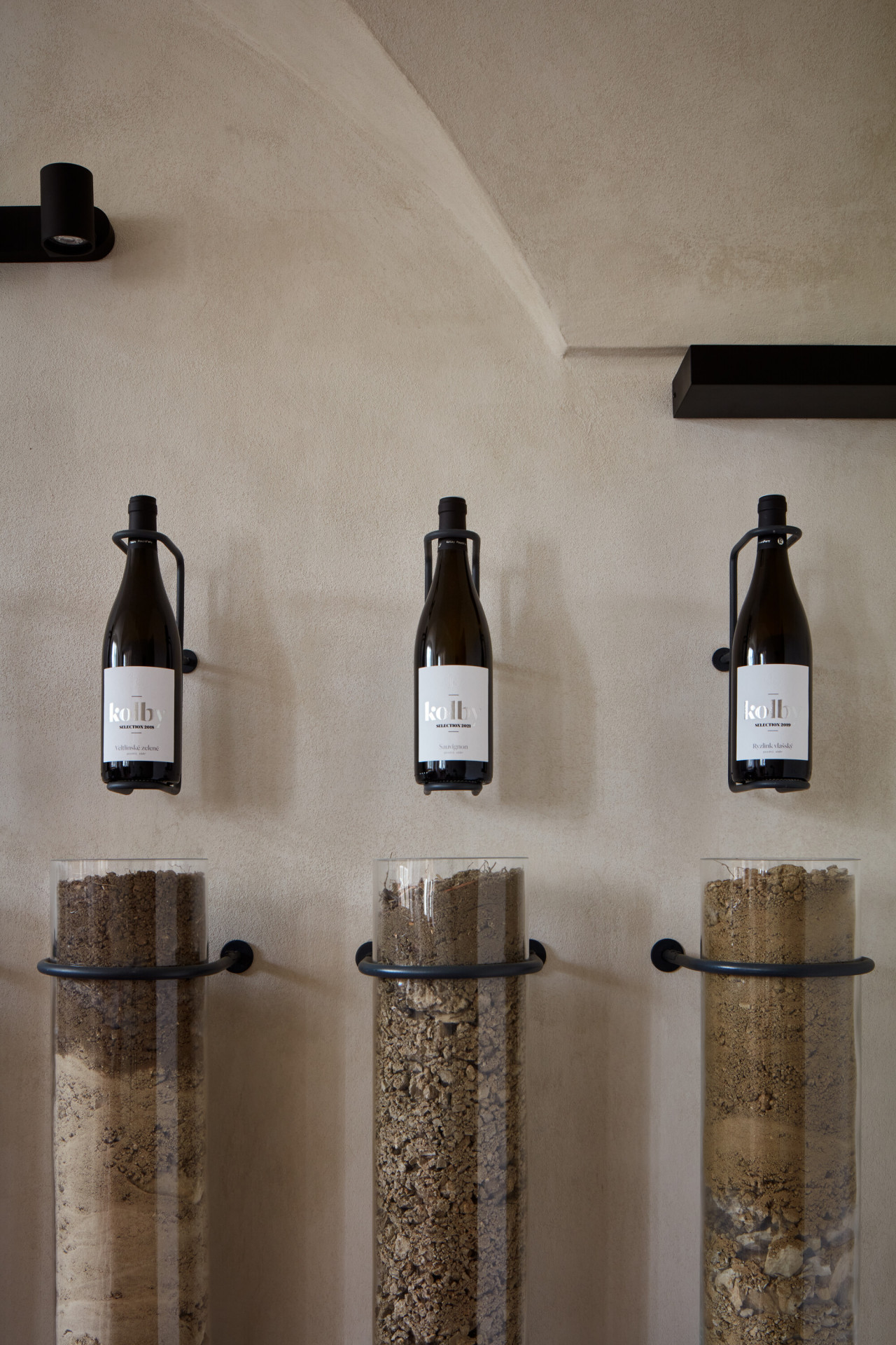 Právě ve Znojmě má ORA jeden ze svých ateliérů. Vzhledem ke své poloze na jihu Moravy se už několikrát dostalo k práci na vinařstvích. Posledně to byly třeba interiéry winebaru Reisten v Pavlově. Teď se do jejich portfolia přidalo Vinařství Kolby v Pouzdřanech, opět blízko přehrady Nové Mlýny.