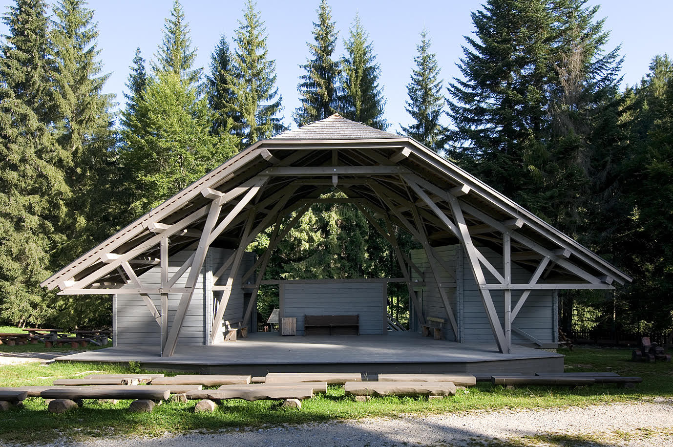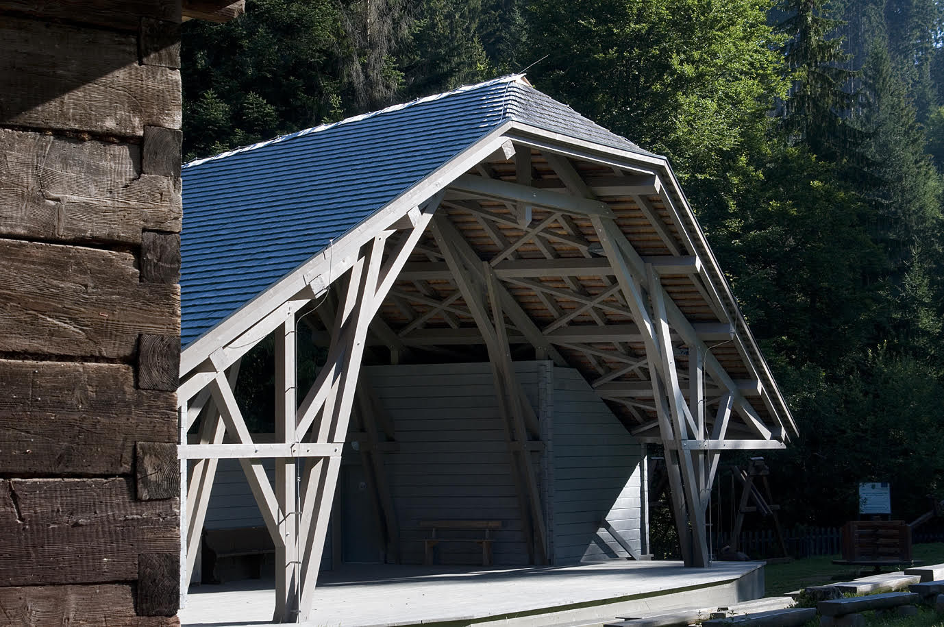 V centru skanzenu patřícího k severoslovenské obci Nová Bystrica navrh bratislavský ateliér VAN JARINA nový prostor pro kulturní události, u kterého se inspiroval z průmyslových konstrukcí začátku 20. století.