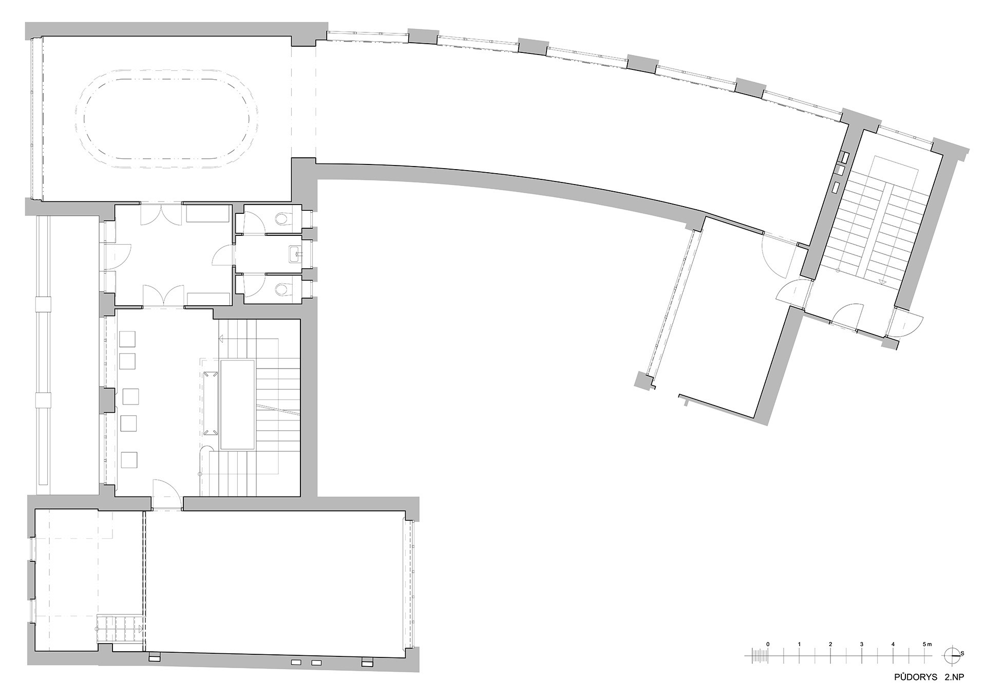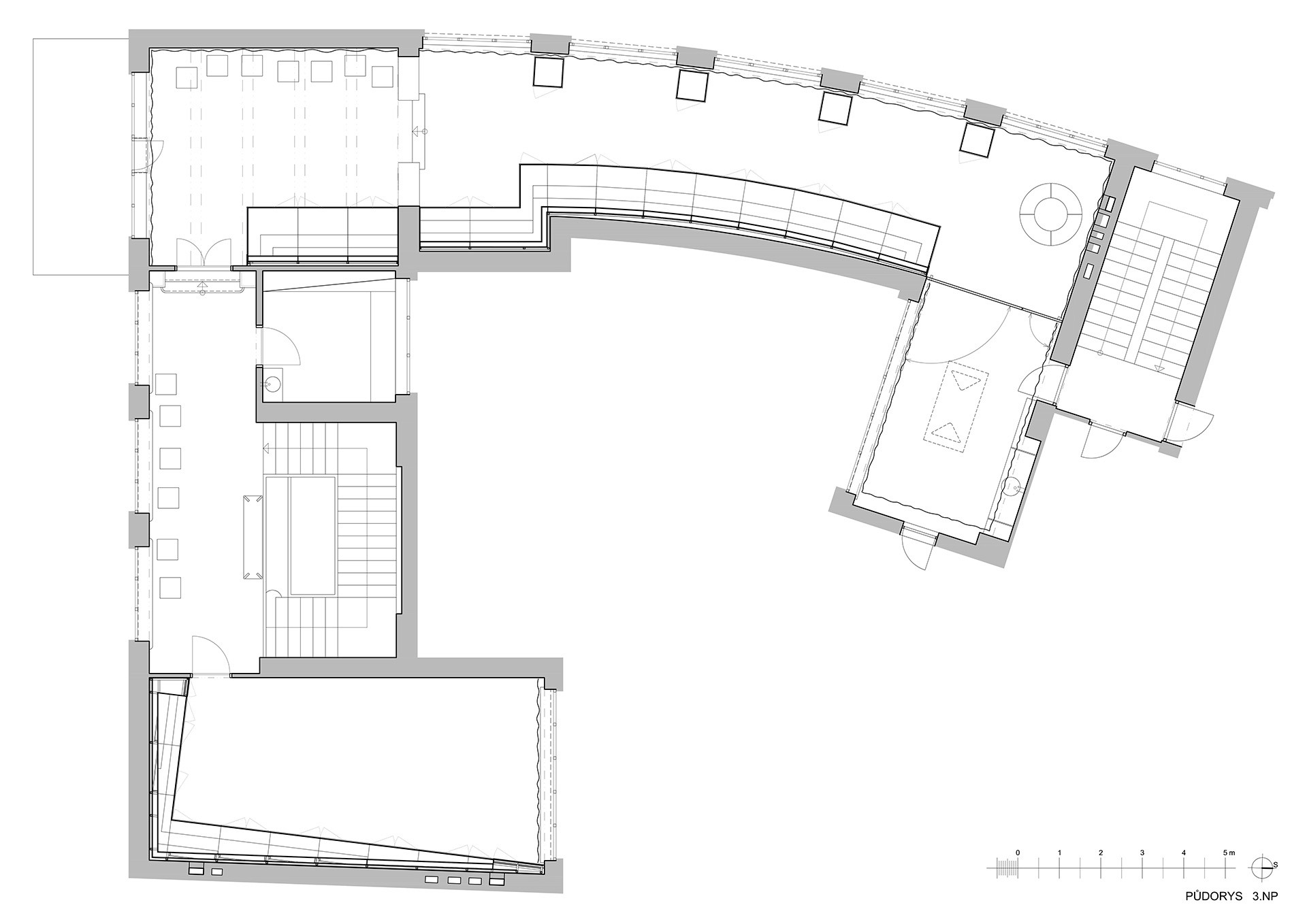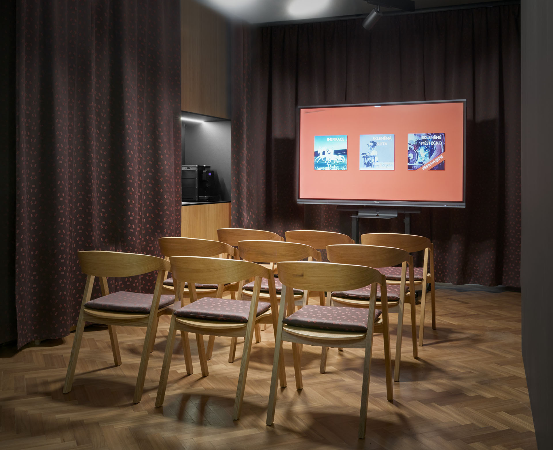 Naopak pečlivě postaráno bylo o původní prvky ze 30. let. „Z dochovaných prvků a konstrukcí, které byly repasované a rekonstruované, stojí za zmínku původní xylolitová a parketová podlaha, skleněná a mosazná svítidla a některé okenní a dveřní výplně včetně kování,“ popisují.