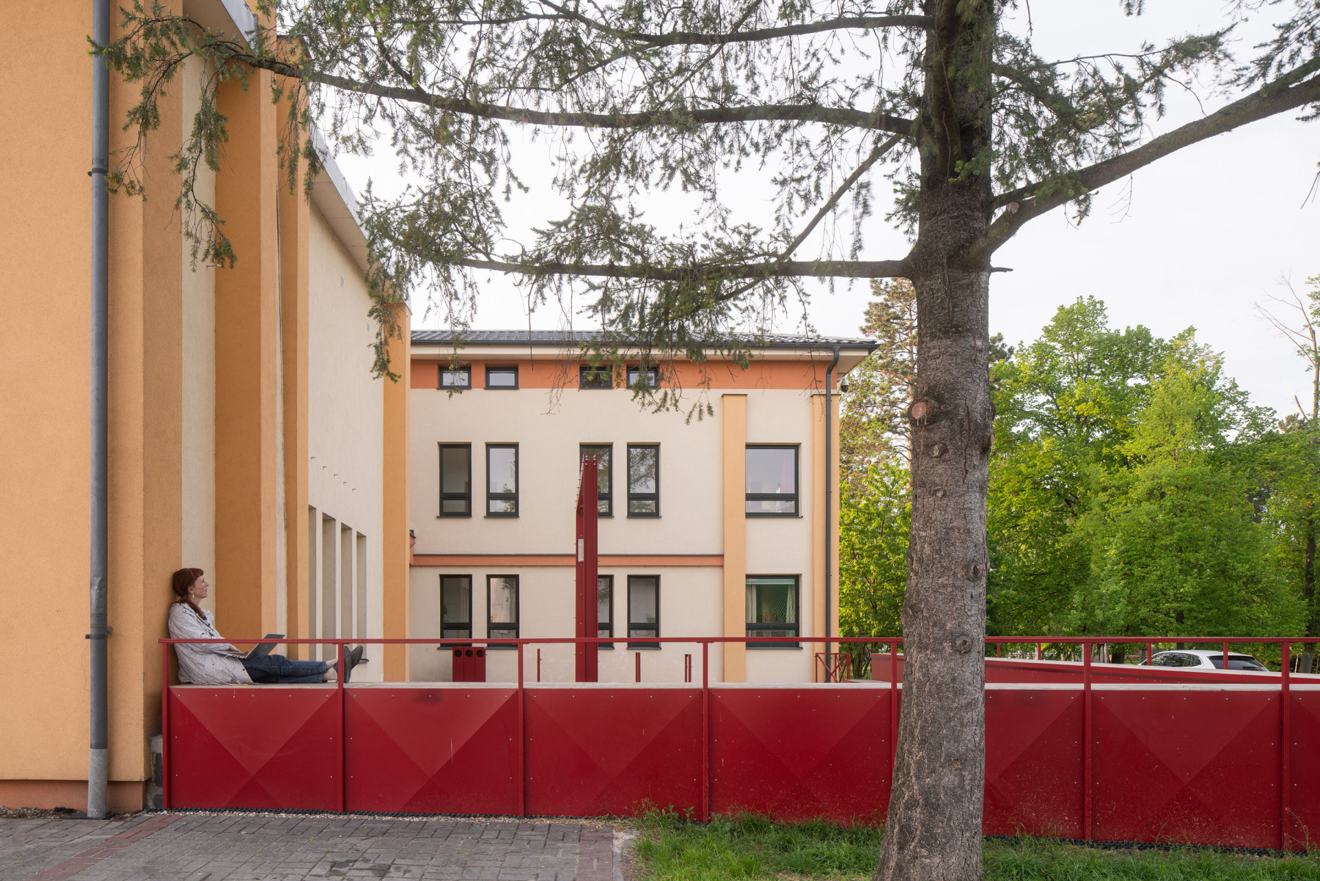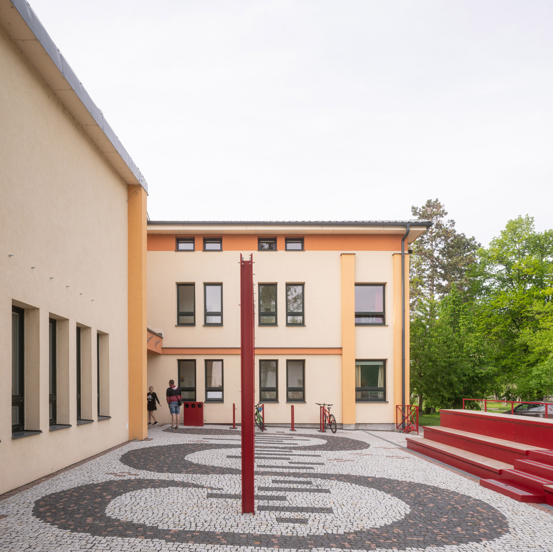 Dřív to byl trochu chaos, prostor před základní uměleckou školou se záhonem byl přístupný všem, využívat se ale vlastně nedal. Novou podobu plácku navrhla architektka Alžběta Brůhová a o nově upraveném místě hovoří jako o „kulturním prostoru“. Vydlážděná plocha s vizuálně sjednoceným mobilářem je totiž hodně multifunkční, funguje jako dětské hřiště, venkovní divadlo nebo lení kino. Zároveň se zde mohou usadit rodinní příslušníci a počkat, až dětem skončí hodiny flétny nebo "výtvarky".