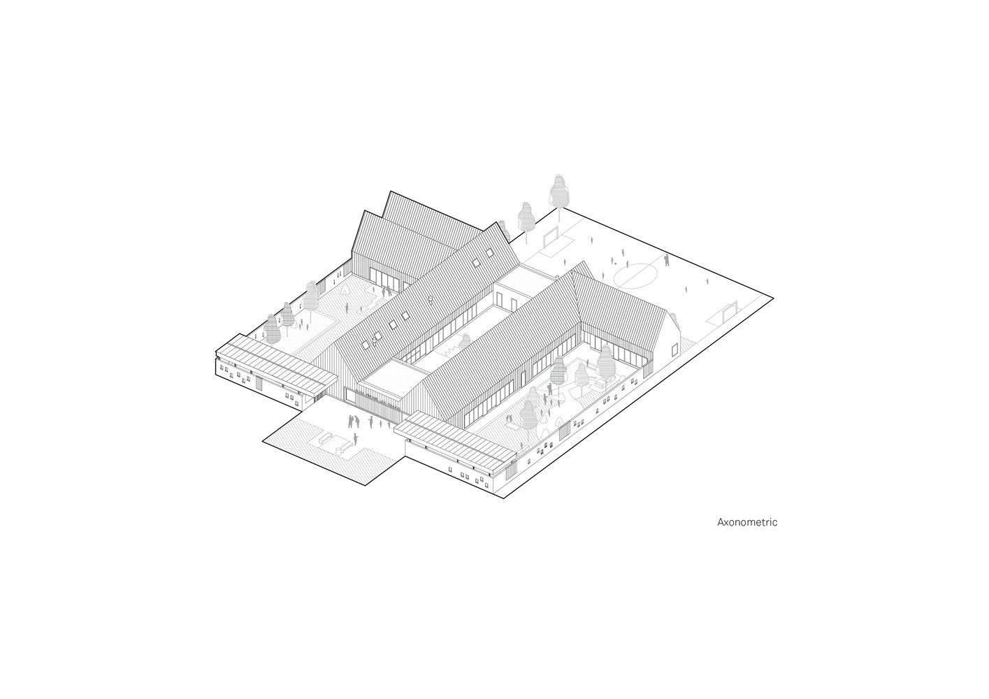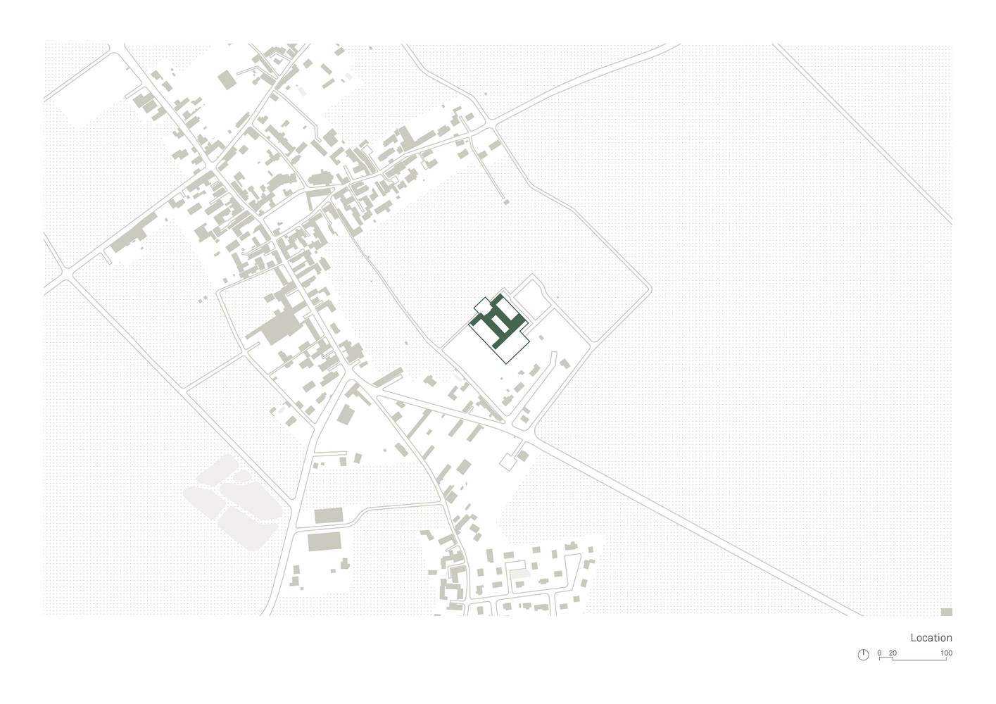 Budova školy se nachází na samotném okraji obce, která má necelých tisíc obyvatel. Architekti ze studia FAUN o své realizaci říkají, že její podoba vyšla právě z místa, kde se nachází. „Škola organizuje přechod ze zastavěného prostředí do zemědělské krajiny,“ vysvětlují.