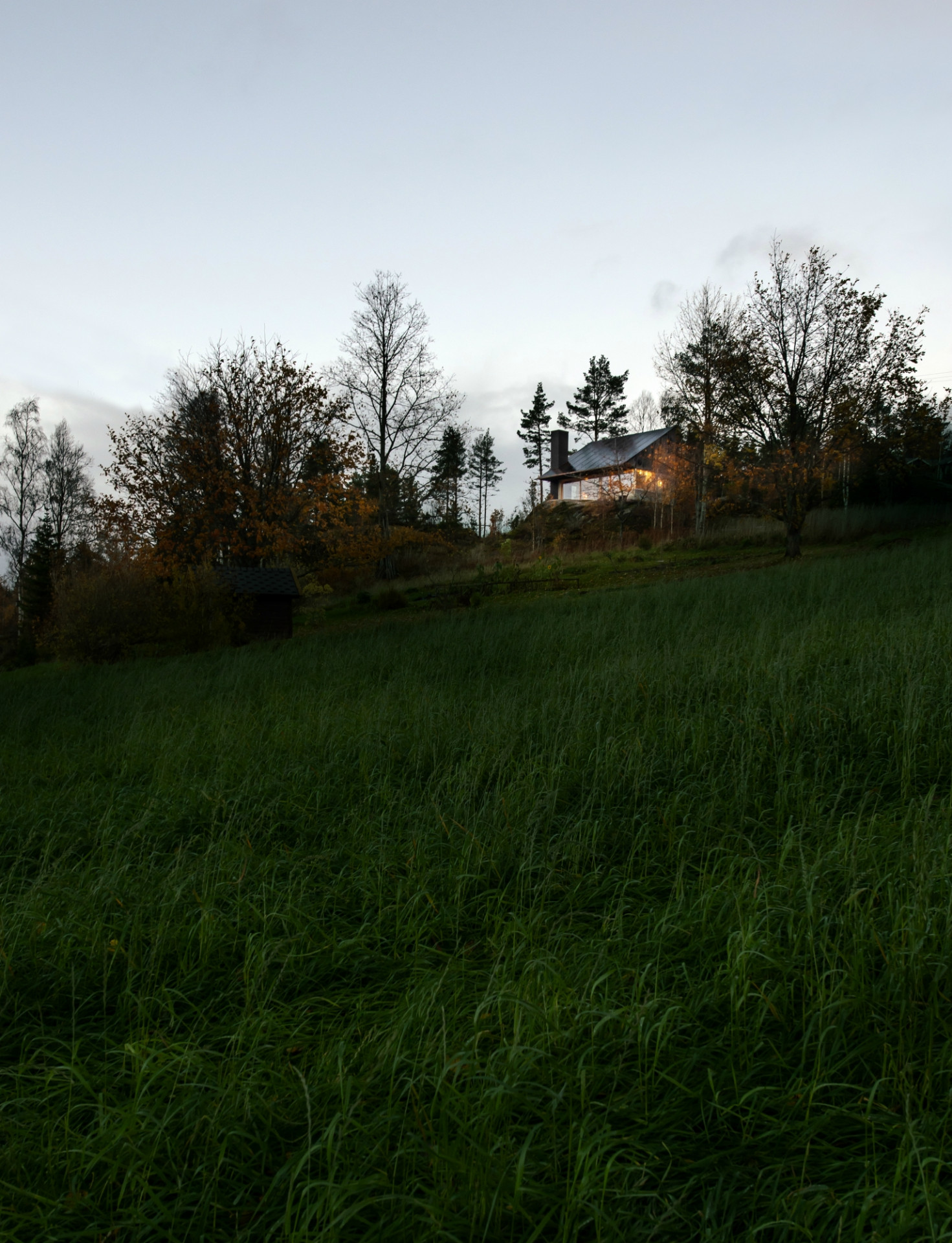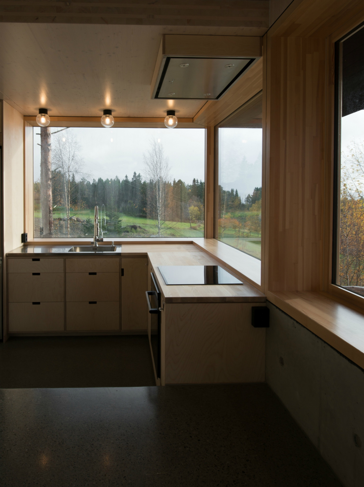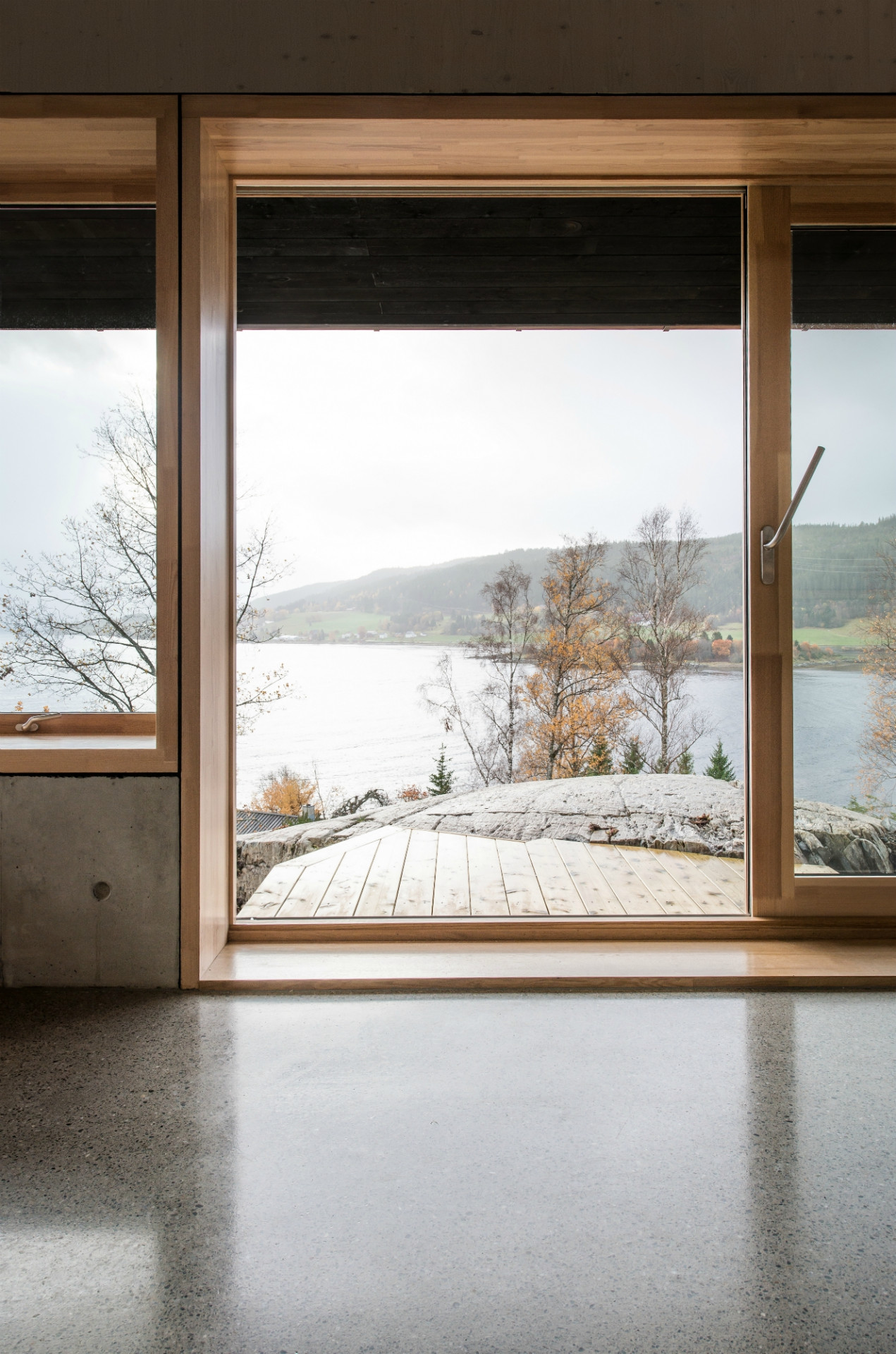 „Kabina je inspirována terénem pozemku a okolní přírodou. Skála nacházející se přímo na tomto pozemku se stala přirozenou zadní částí samotné budovy a poskytla jí jakýsi přírodní přístřešek,“ vysvětluje jeden z partnerů architektonického studia Sanden + Hodnekvam Architects John Sanden. „Norové mají obecně rádi turistiku a svůj volný čas hodně tráví venku. Když se pak při vycházce zastavíme, abychom si dopřáli chvíli odpočinku, je takové chráněné místo přesně tím, co hledáme. U chaty jsme usilovali o stejnou prostorovou kvalitu – přístřešek, který navozuje pocit ústraní.“