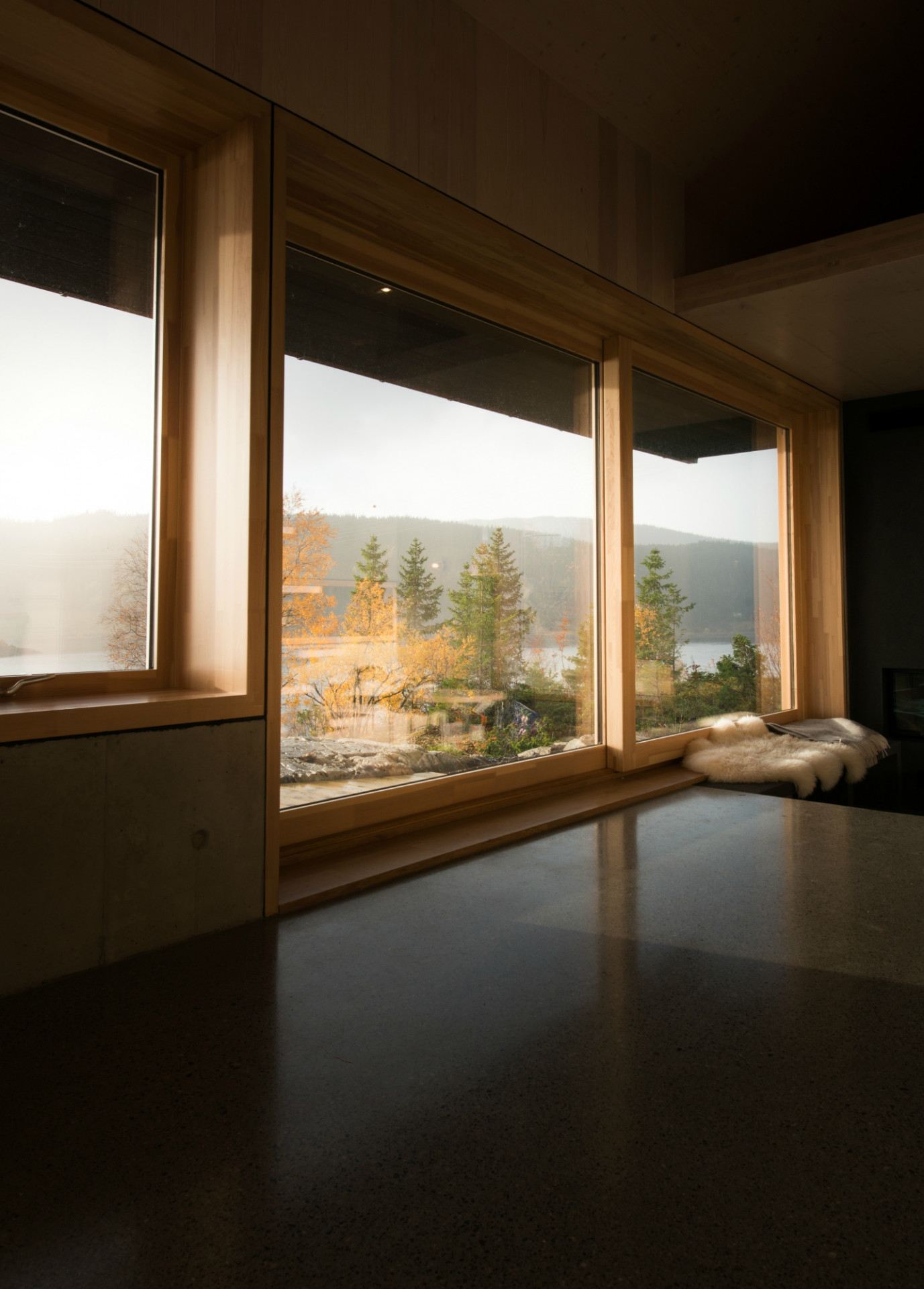 Chatu najdeme přibližně 150 kilometrů severně od Trondheimu, třetího největšího města Norska. Při promýšlení návrhu se architekti inspirovali místní krajinou i samotným členitým pozemkem, jemuž se chata musela přizpůsobit také po konstrukční stránce.