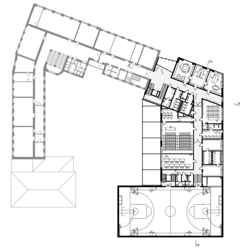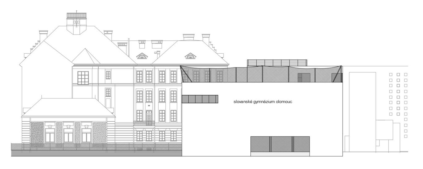 Objekt jednoho z nejstarších moravských gymnázií doplnila soudobá dostavba od studia atelier-r, které v Olomouci navrhlo několik dalších rekonstrukcí a novostaveb (např. rekonstrukcí bývalého obchodního domu Prior). Navržená přístavba Slovanského gymnázia se od původní budovy na první pohled odlišuje, zároveň však plynule navazuje na okolní zástavbu.
