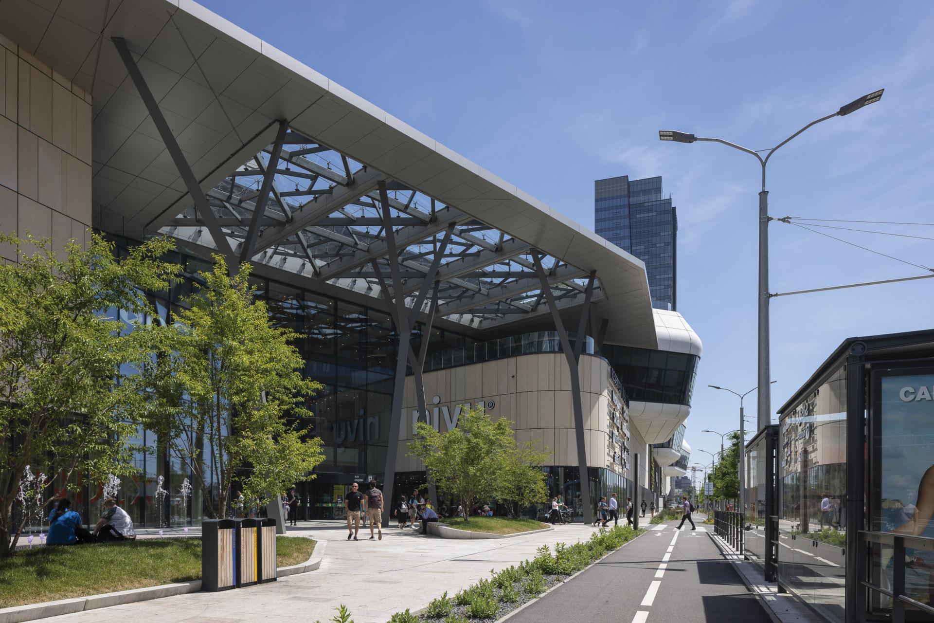 Prvním z nich je studio Benoy z Londýna, které má široký záběr od urbanismu, přes architekturu až k interiérovému designu. Jsou známí svou činností v oblasti navrhování obchodních center – jedním z jejich nejznámějších projektů je například Westfield v Londýně – právě díky tomu se podíleli i na obchodním centru v Mlýnských Nivách. Jejich čitelný a autentický rukopis často oživují oblíbeným elementem přírody nebo oblých prvků, které jsou součástí i autobusového nádraží v Bratislavě. Kromě vytváření příjemných míst v městské struktuře je jejich přidaná hodnota zejména v propojování množství funkcí, které musí budova obsahovat a zprostředkovat – autobusové nádraží, parkování, nákupní centrum, zelená střecha, a dokonce i umění.