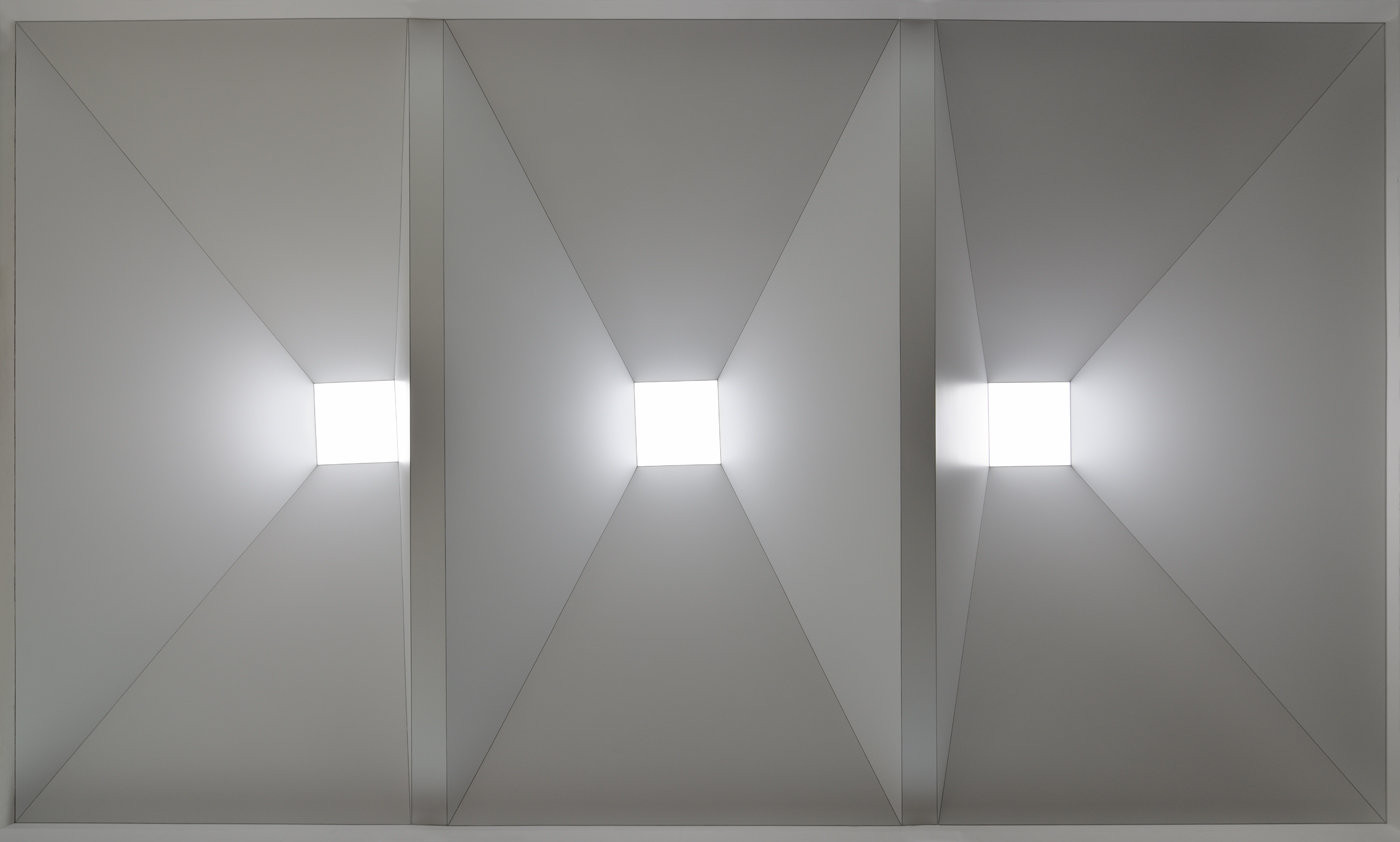 Vyosení ocelového krovu architekti podpořili vestavbou trojice komolých jehlanů se zdrojem světla, pomocí kterého ho narovnávají. Tyto prvky nejen že prostor rytmizují, ale také jej opticky zklidňují a sjednocují. Mezi tmavou spodní částí a světlými jehlany je po bocích vložen pás svítícího mléčného prosklení, jež je z exteriéru stíněný těžkými textilními závěsy, což zamezuje přívodu přirozeného světla a síň posouvá do meziprostoru, kde se čas zastavil.