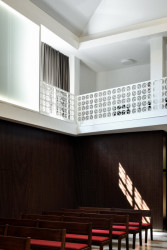 Vedle symetrie se druhým klíčovým tématem rekonstrukce stala lehkost. Snaha ztvárnit prostor tak, aby působil klidně, odlehčeně a oproštěně od tíhy, jak fyzické tak i symbolické. Prostor, který nepůsobí stísněně, ale naopak umožňuje soustředění, ticho a vnitřní zastavení.