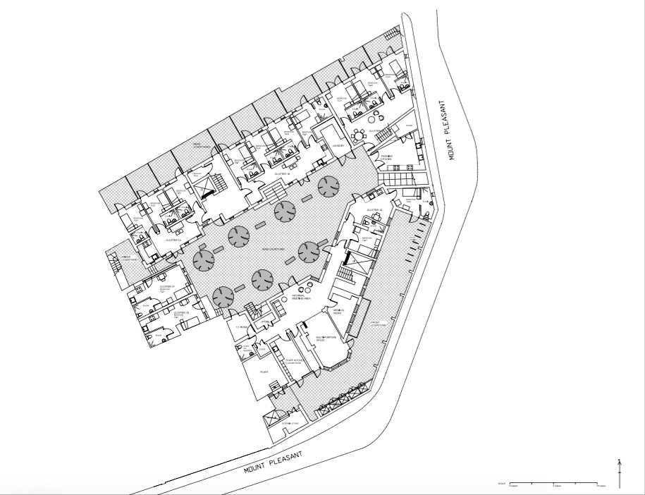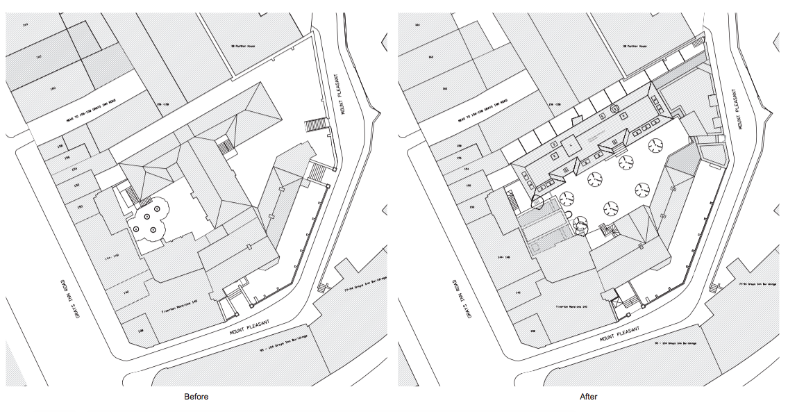 Mount Pleasant slouží jako sociální bydlení pro lidi bez domova, ke kterému patří také poklidný dvůr, kde si mohou obyvatelé bytů odpočinout. Objekt se nachází poblíž londýnské Gray’s Inn Road a High Holborn.