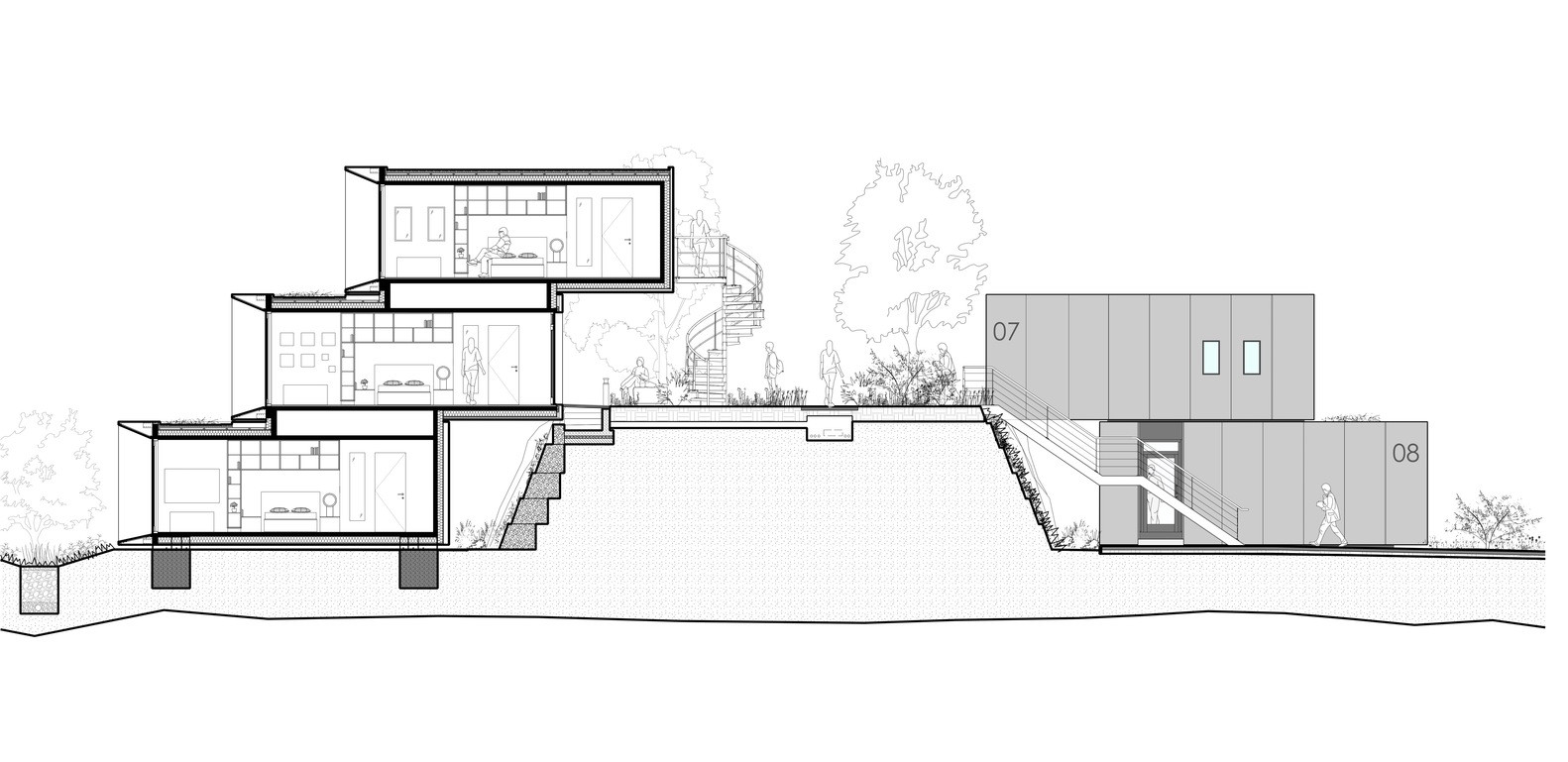 Konstrukci jednotek tvoří tzv. CLT panely vyráběné z vrstev masivního dřeva lepených křížem, které vykazují dobré konstrukční vlastnosti a zároveň umožňují rychlou výstavbu. Jednotky jsou totiž řešeny jako prefabrikované modulární objekty, které byly vyrobeny v továrně a již kompletně vybavené se dopravily na pozemek. Ubytování slouží celkem 50 studentům a dalším zaměstnancům institutu. Součástí projektu se stala také kruhová prosklená budova tzv. clubhousu, kde se nachází kavárna, bar, studovna i výukové místnosti.