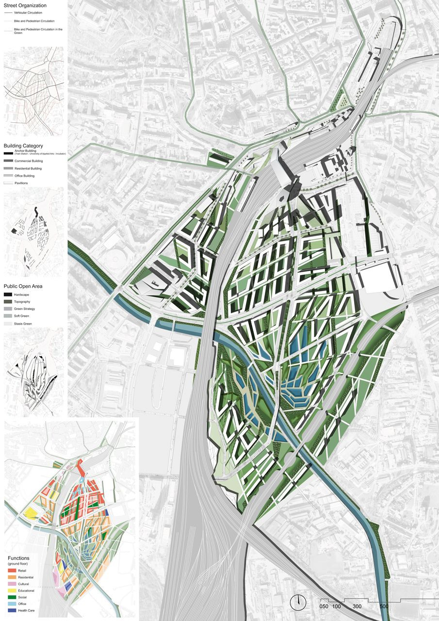 Hodnocení poroty: Navržený projekt představuje kompaktní a vizuálně zajímavé, i když poněkud formalistní, urbanistické řešení, které se z ekonomického i z časového hlediska jeví jako obtížně uskutečnitelné. Realizace by řešené území více méně vytrhla z kontextu města a vytvořila by tak přímou konkurenci starému centru.