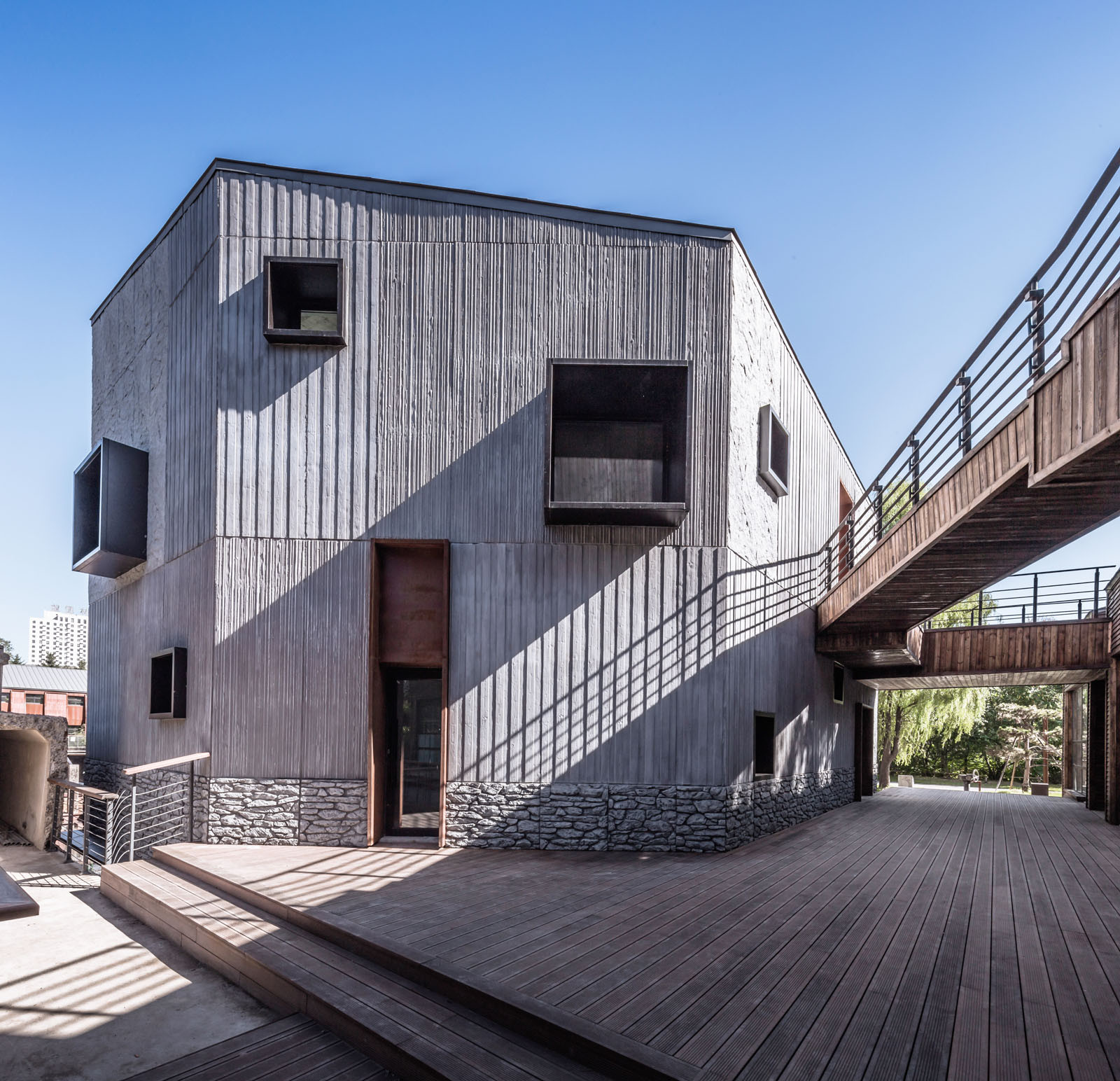 Z celkového počtu osmdesáti budov areálu bylo zachováno patnáct historických objektů z období existence státu Mandžukuo (1932-1945), více než třicet z nich muselo být zbořeno kvůli jejich špatné statice. K zemi padlo také několik přístaveb, které v areálu vznikly dokonce bez stavebního povolení. Kromě rekonstrukce stávajících budov navrhli architekti také nové trojúhelníkové návštěvnické centrum, jehož osm metrů vysoký vrchol se svažuje do stran a plynule tak přechází do okolní krajiny. „Vybrali jsme některé původní prvky a ponechali je v jejich základní barvě, aby působily jednoduše a zároveň harmonicky ladily s okolím," uvádějí architekti.