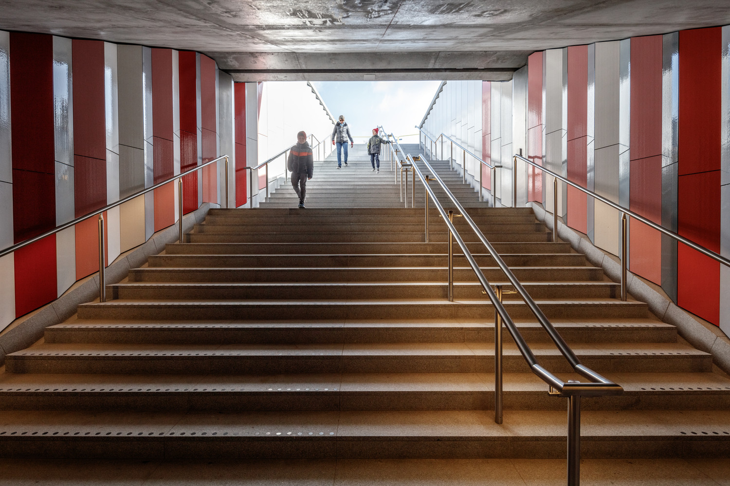 Nadzemní stanice metra Orientkaj zaujme už zdálky svou masivní a odvážně pojatou železobetonovou konstrukcí. Stavba připomíná most posazený na centrálním pilíři a dvou postranních trojúhelníkových podpěrách. Architekti z oceňovaného studia COBE je označují jako „betonová klepeta“.